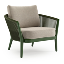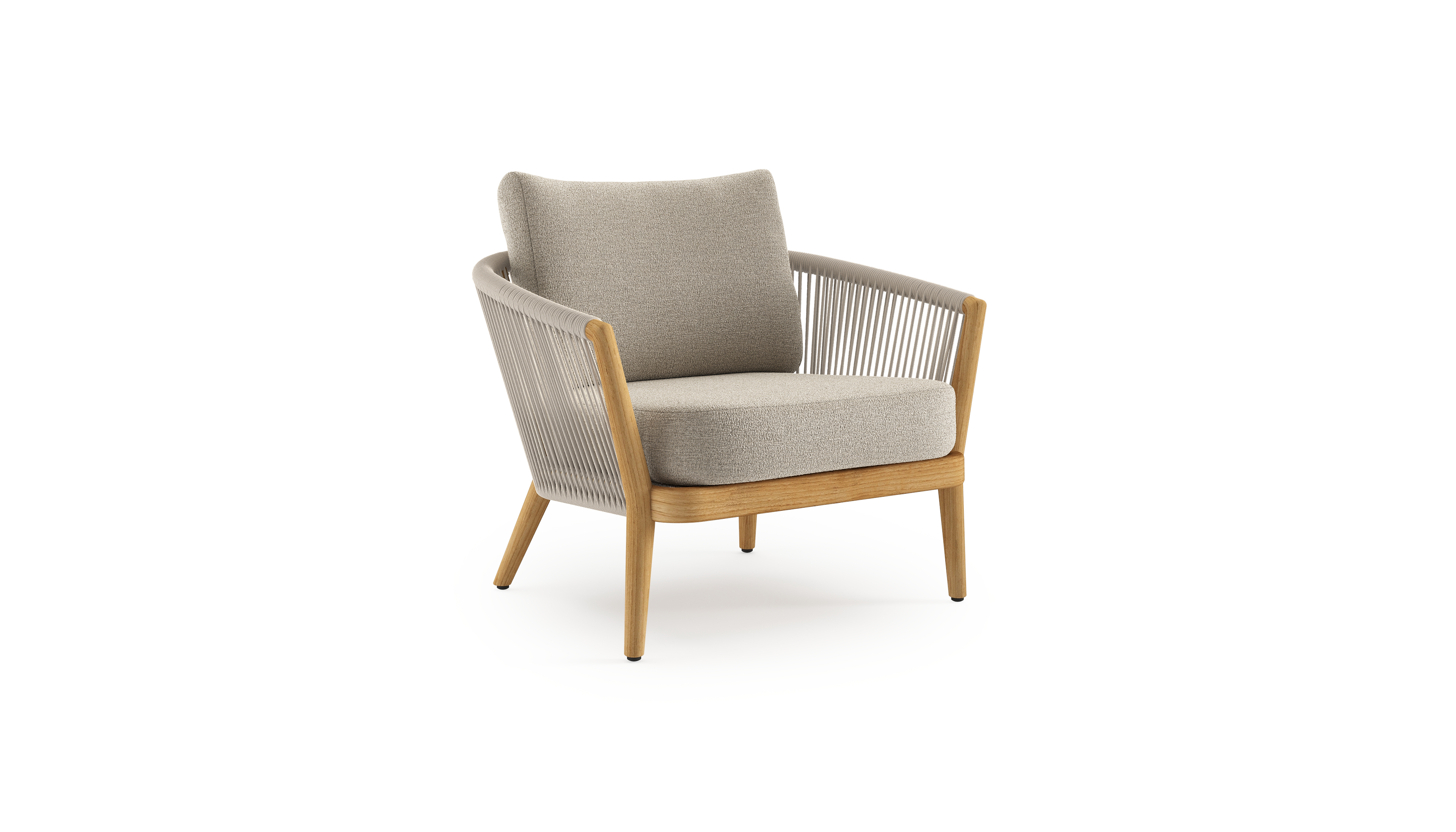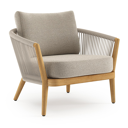 Orso loungestoel in teak en beige verticaal geweven ronde rope met Catania Greige all weather cosytica kussen | Exterioo tuinmeubelen
