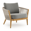 Orso loungestoel in teak en beige verticaal geweven ronde rope met Savane Zinc all weather sunbrella® luxe kussen | Exterioo tuinmeubelen
