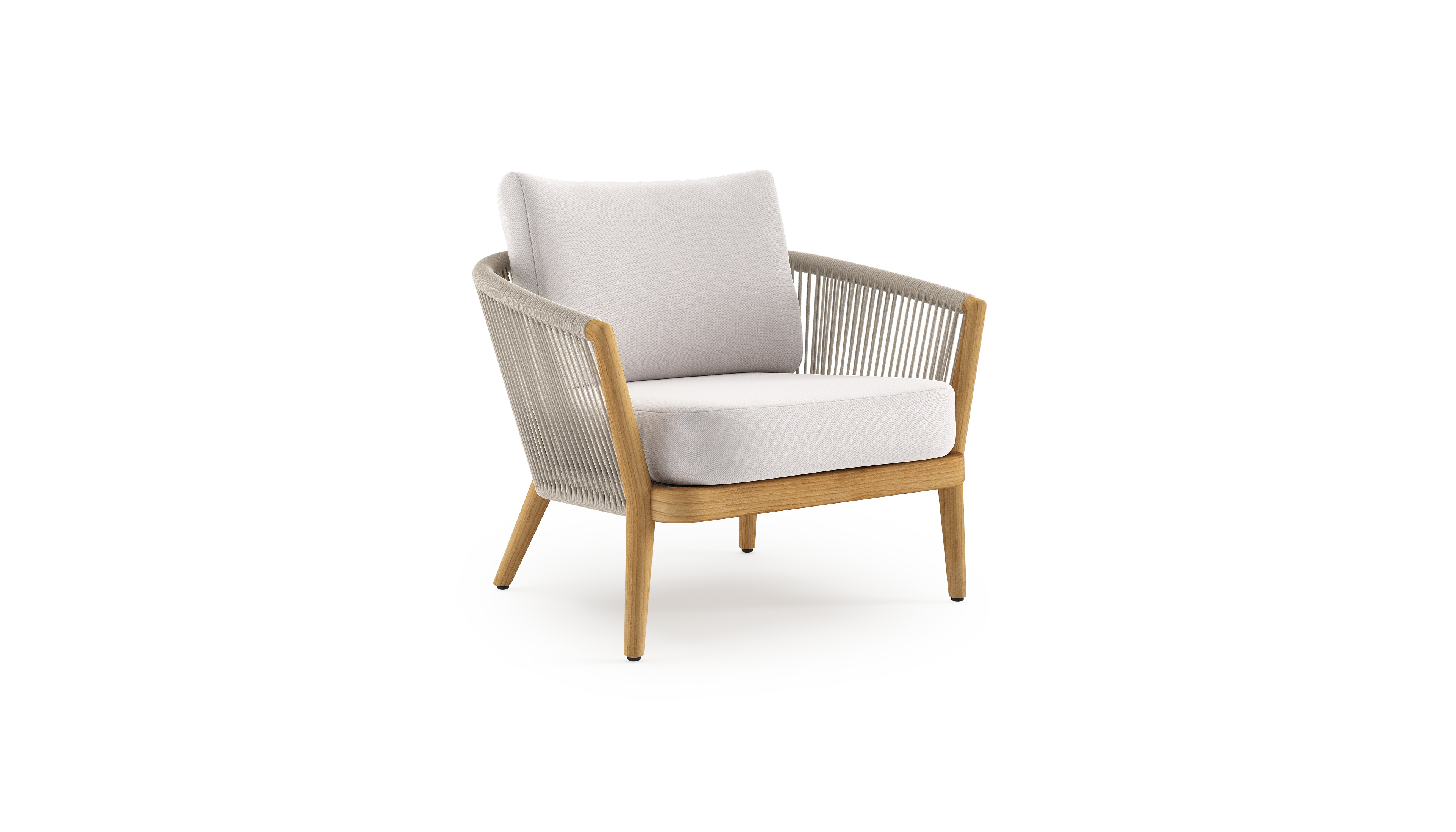 Orso loungestoel in teak en beige verticaal geweven ronde rope met Savane Whisper all weather sunbrella® luxe kussen | Exterioo tuinmeubelen