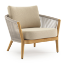 Orso loungestoel in teak en beige verticaal geweven ronde rope met Soul Papyrus all weather solica kussen | Exterioo tuinmeubelen