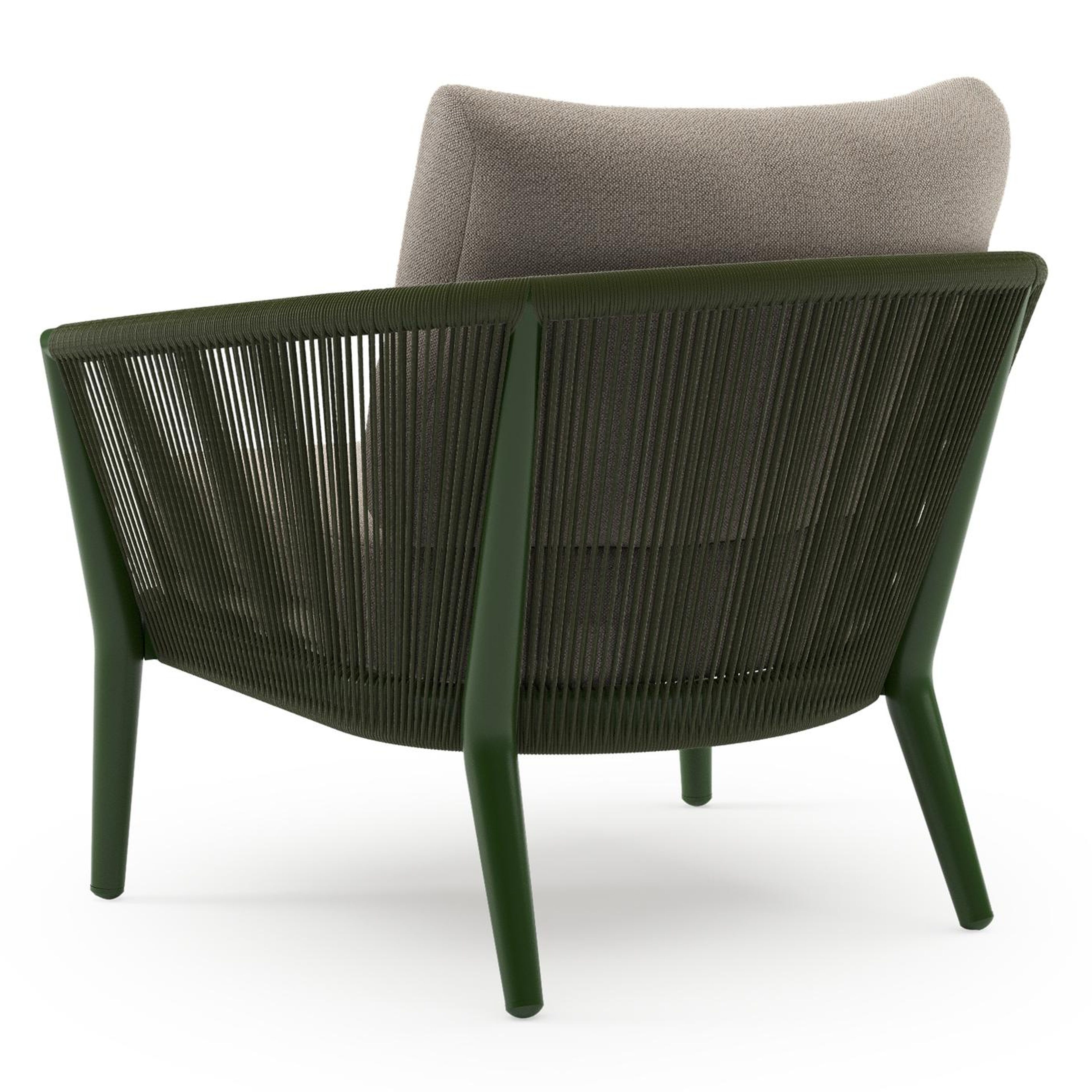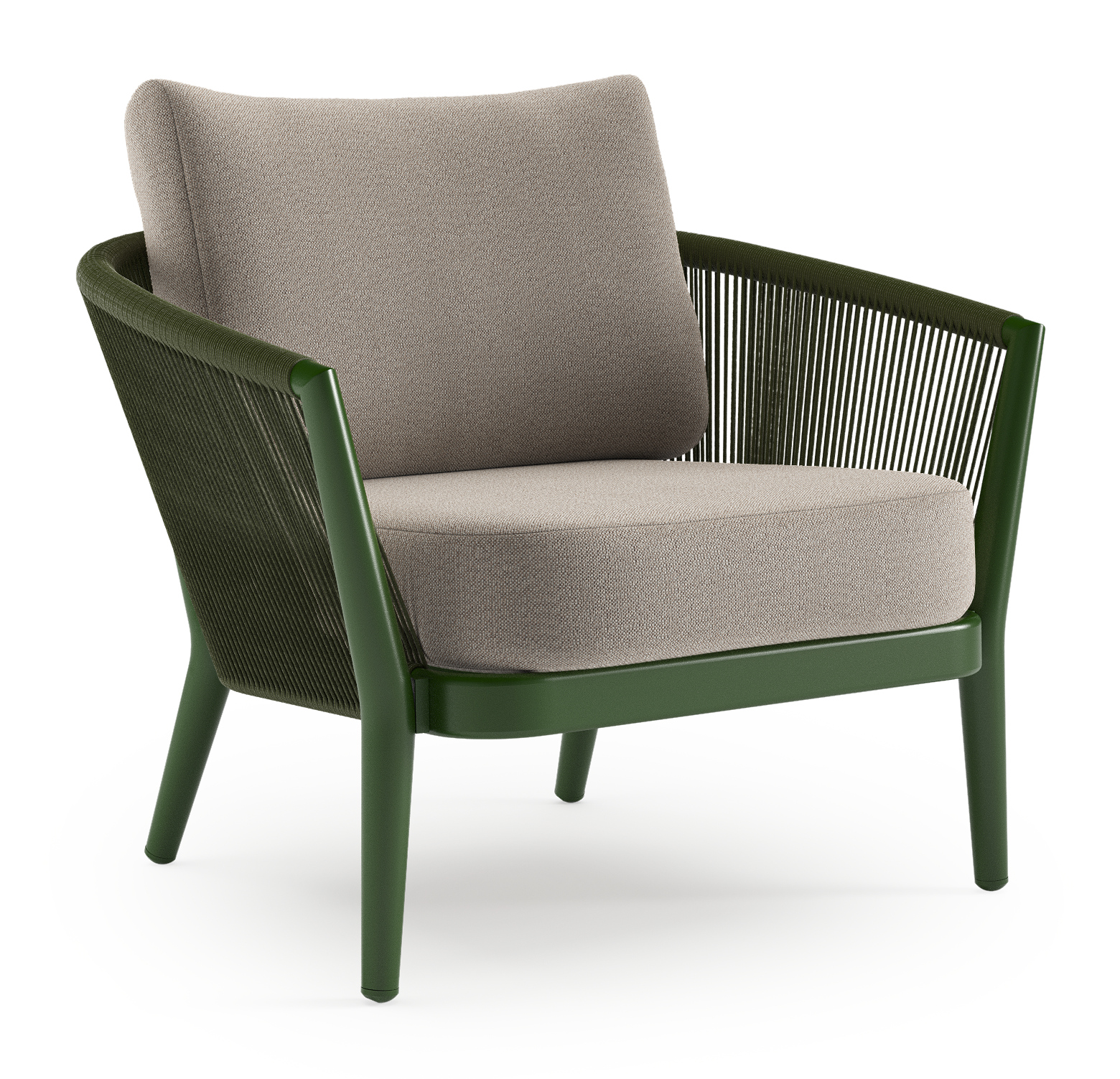 Orso loungestoel in groen aluminium en groen verticaal geweven ronde rope met Savane Coconut all weather sunbrella® luxe kussen | Exterioo tuinmeubelen