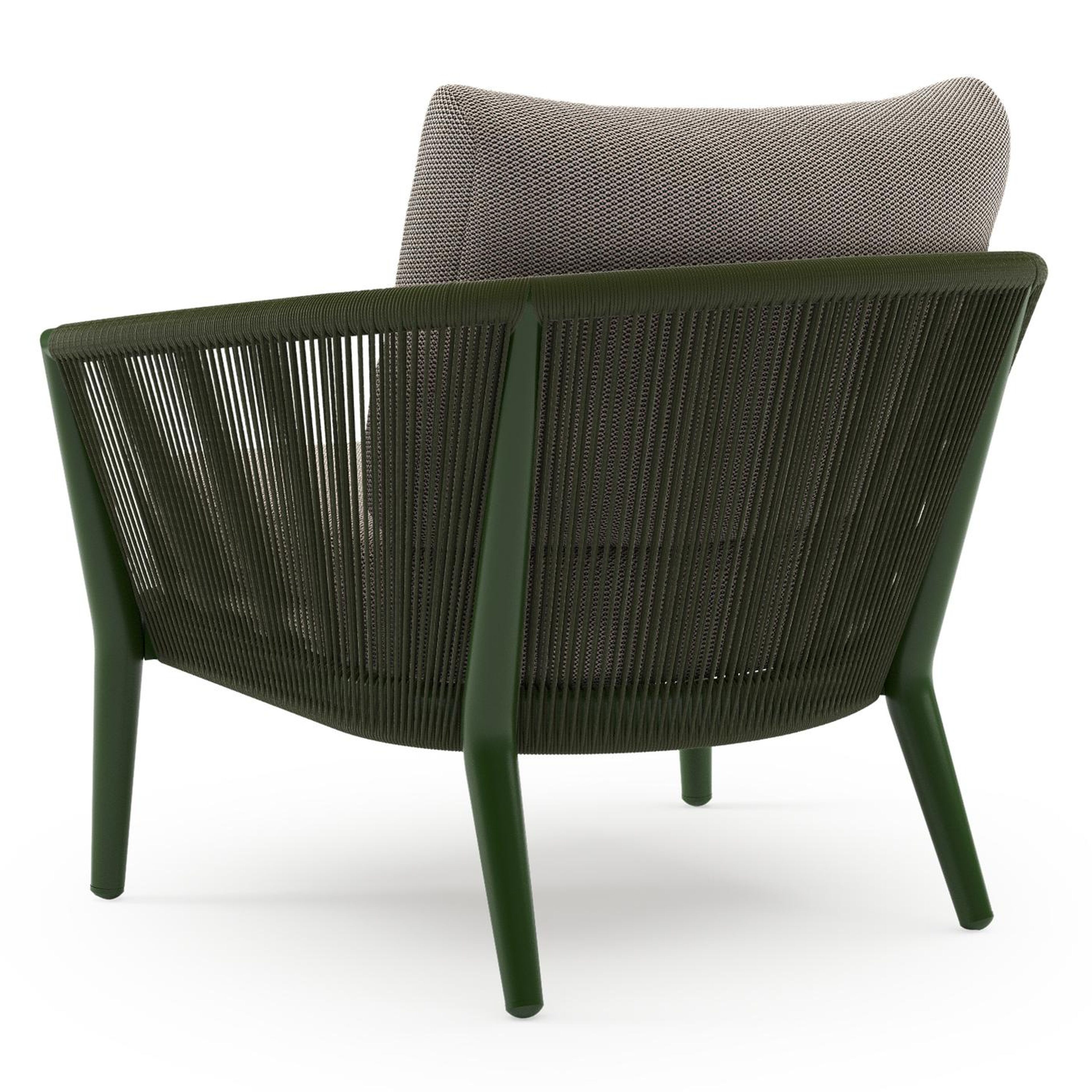 Orso loungestoel in groen aluminium en groen verticaal geweven ronde rope met Lopi Pepper all weather sunbrella® luxe kussen | Exterioo tuinmeubelen