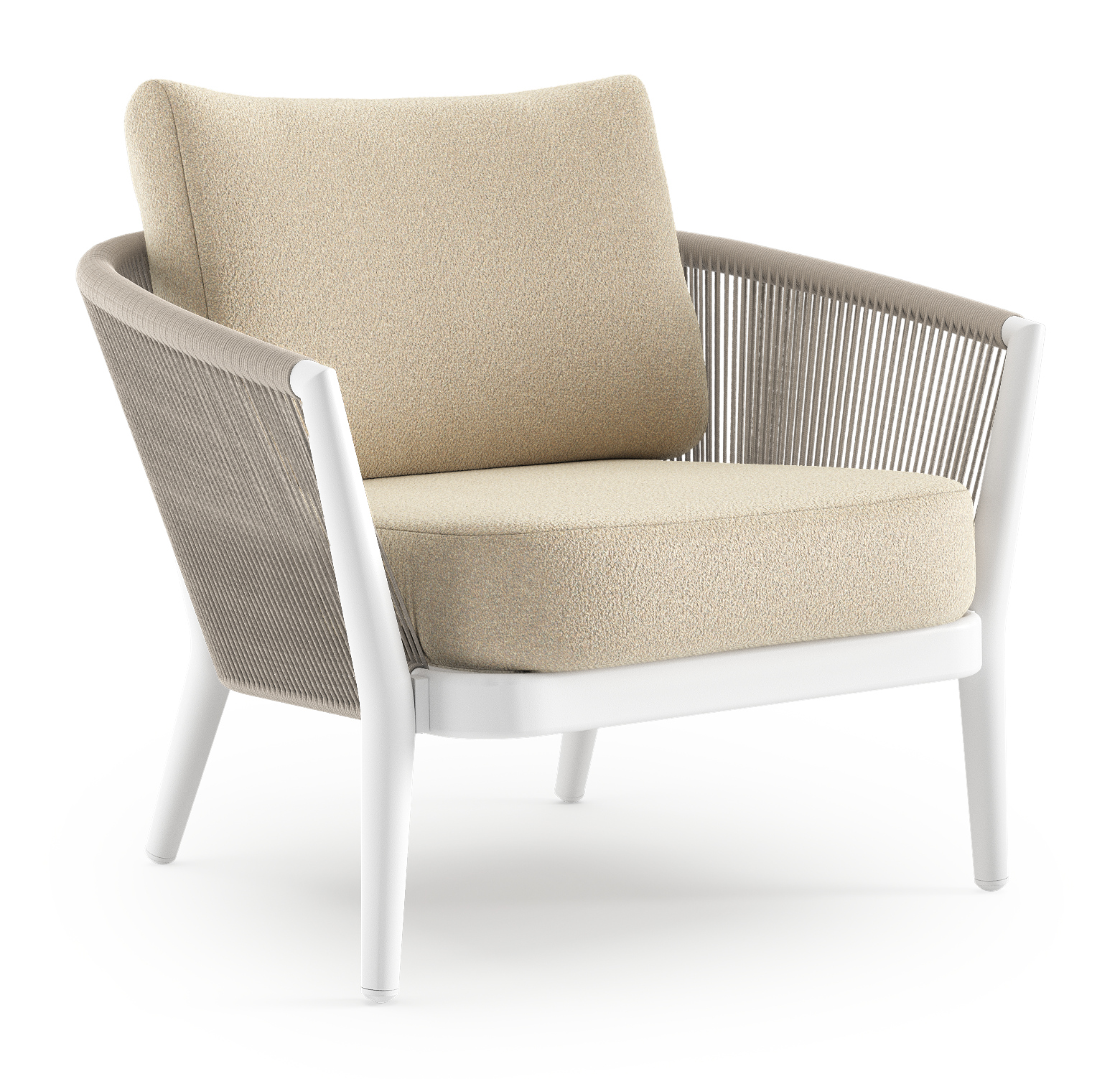 Orso loungestoel in wit aluminium en beige verticaal geweven ronde rope met Soul Papyrus all weather solica kussen | Exterioo tuinmeubelen