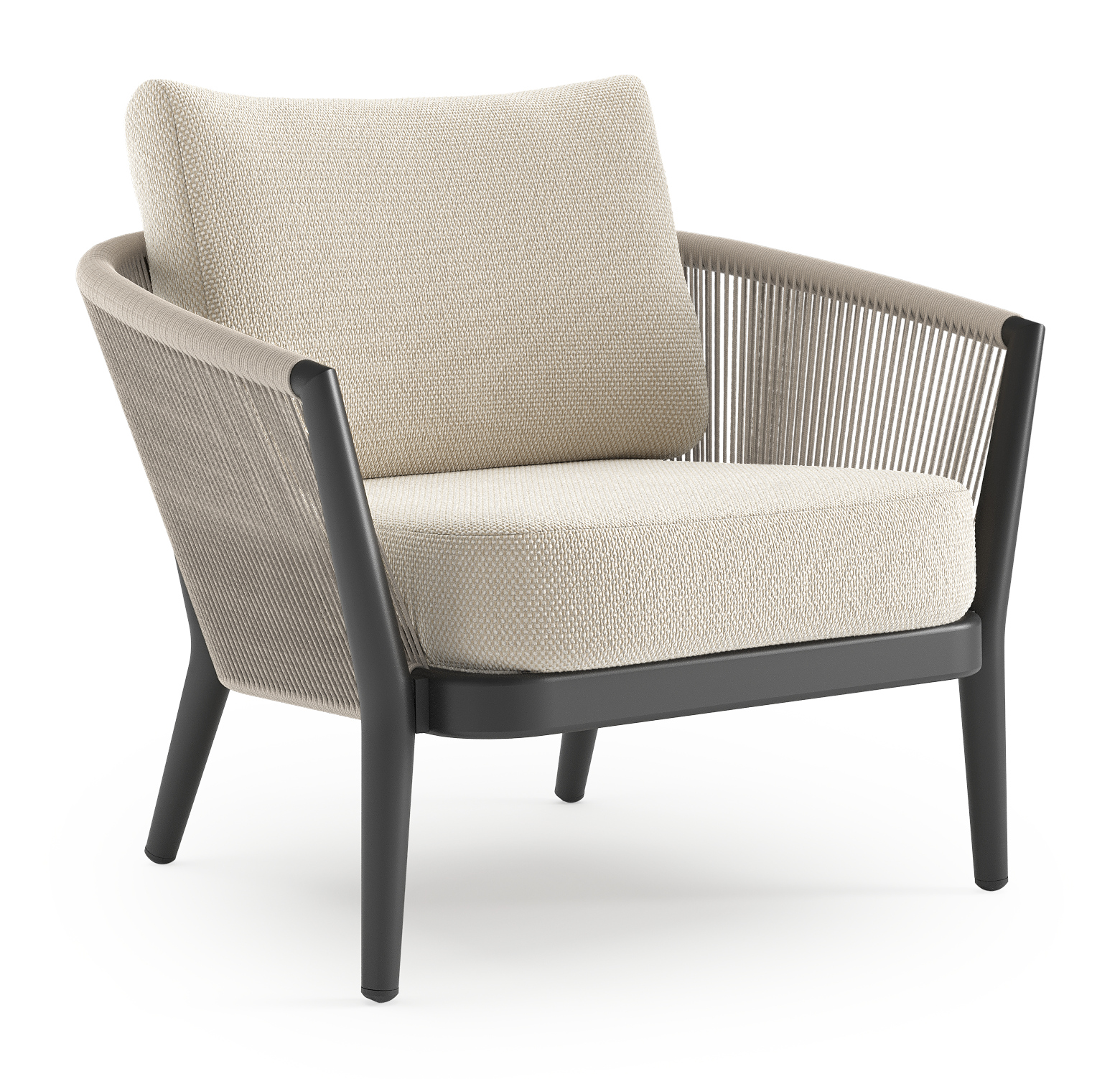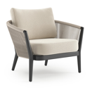 Orso loungestoel in zwart aluminium en beige verticaal geweven ronde rope met Althea Off White all weather cosytica kussen | Exterioo tuinmeubelen