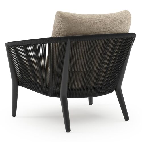 Orso loungestoel in zwart aluminium en zwart verticaal geweven ronde rope met Althea Chalk all weather cosytica kussen | Exterioo