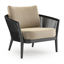 Orso loungestoel in zwart aluminium en zwart verticaal geweven ronde rope met Althea Camel all weather cosytica kussen | Exterioo