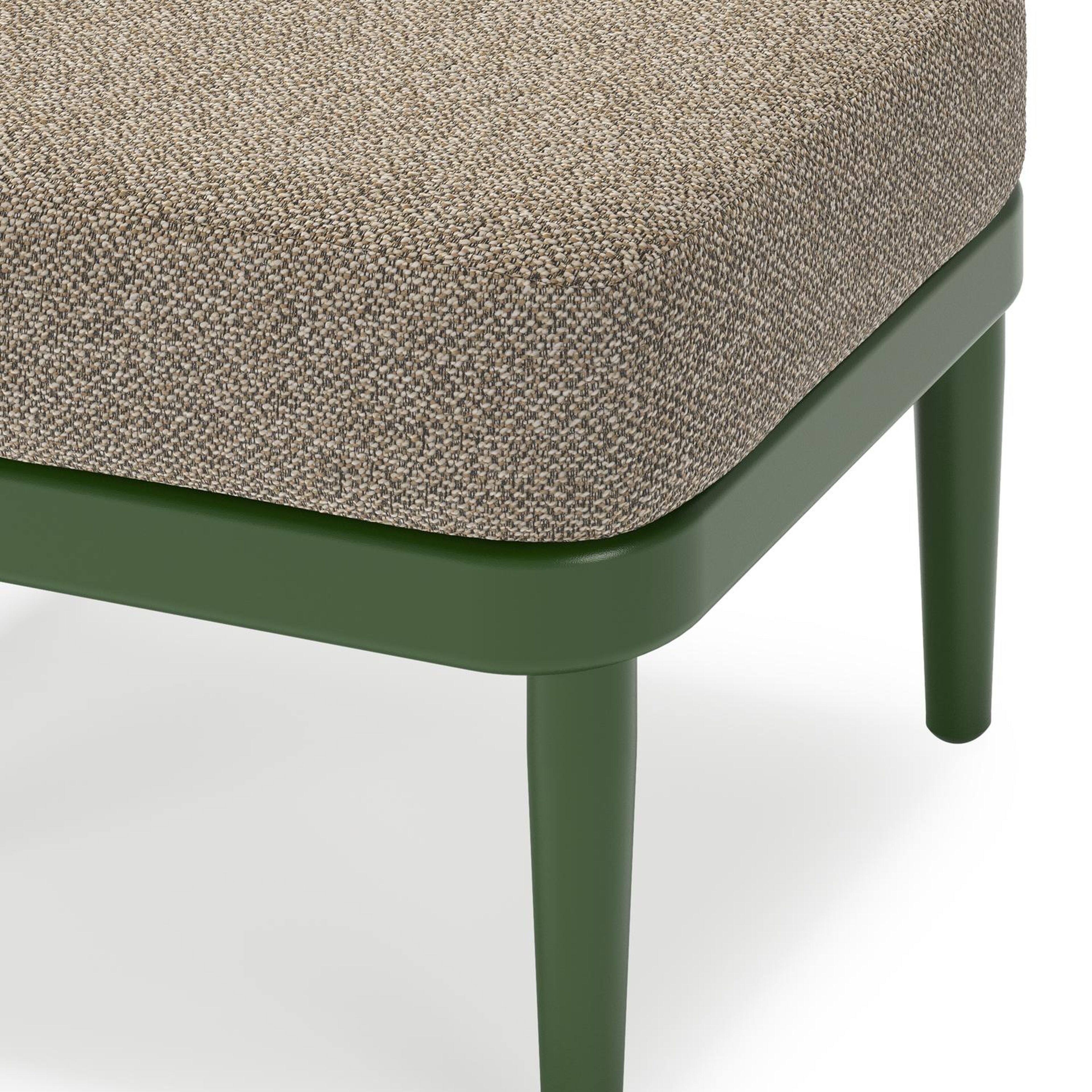 Orso poef in groen aluminium met Madagascar Burch all weather cosytica kussen | Exterioo tuinmeubelen