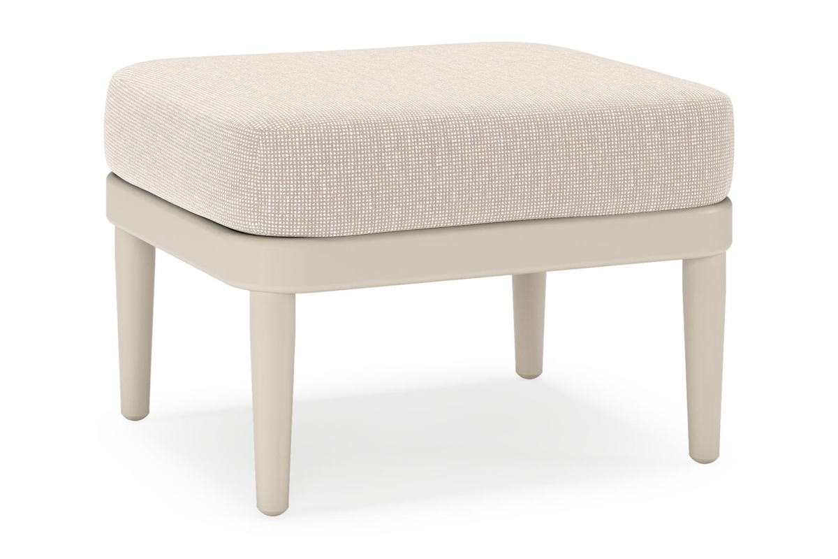 Orso poef in beige aluminium met Slow Farafra all weather sunbrella® luxe kussen | Exterioo