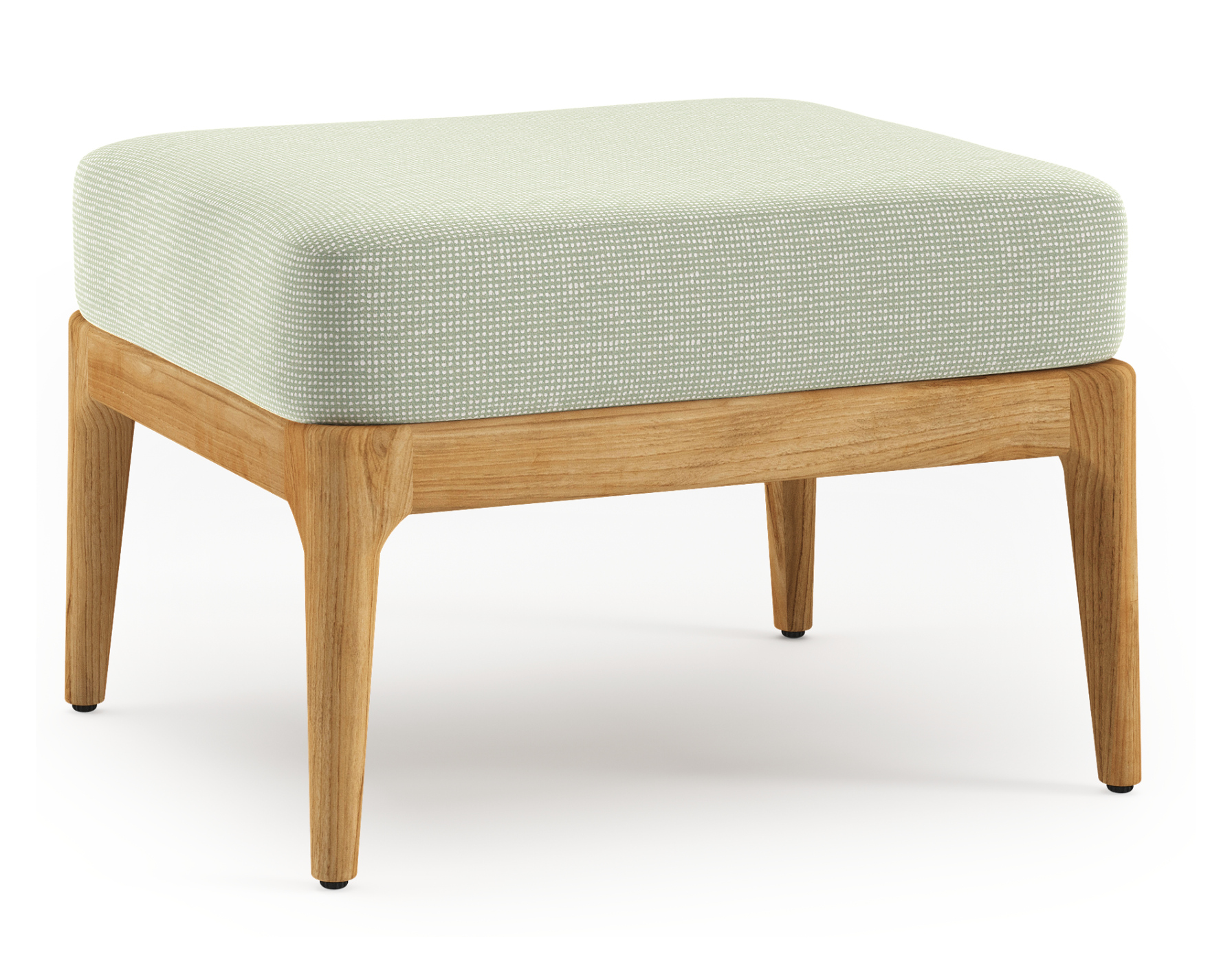 Orso poef in teak met Slow Spirea all weather sunbrella® luxe kussen | Exterioo tuinmeubelen