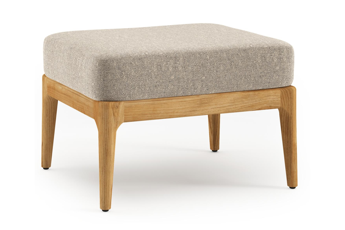 Orso poef in teak met Chartres Pewter all weather sunbrella® luxe kussen | Exterioo