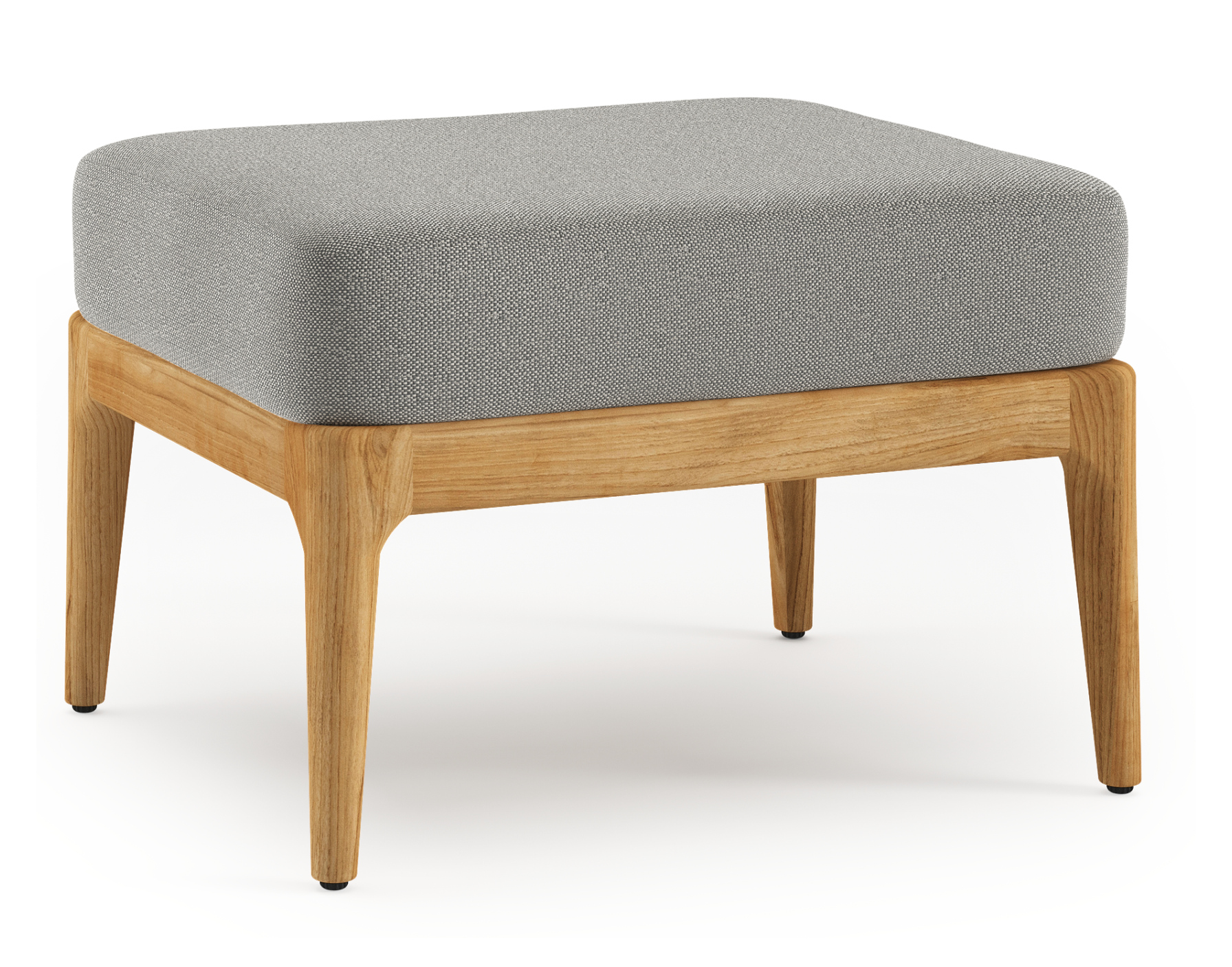 Orso poef in teak met Savane Zinc all weather sunbrella® luxe kussen | Exterioo tuinmeubelen