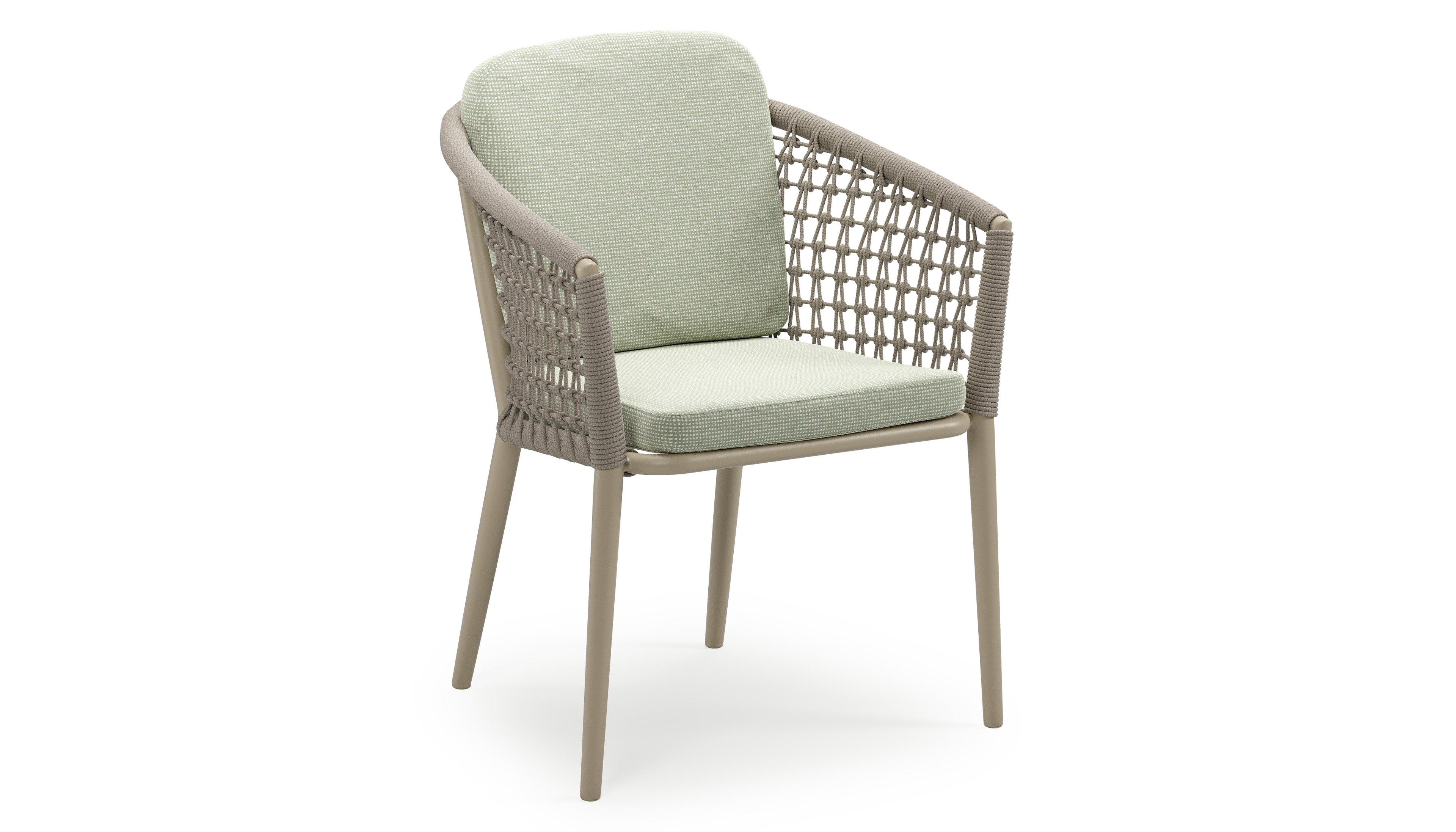 Rope is een meerlagige synthetische draad. Het weerbestendige materiaal heeft een unieke uitstraling en voelt zacht aan. Rope staat gekend als onderhoudsvriendelijk, stevig en erg comfortabel. In deze uitvoering wordt de rope geweven in een visnetstructuur, wat zorgt voor een luchtige en open uitstraling.