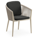 Orso stapelbare tuinstoel in beige aluminium en beige visnet geweven ronde rope met stoelkussen in All Weather Sunbrella® Luxe Chartres Sooty | Exterioo tuinmeubelen