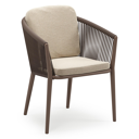 Orso stapelbare tuinstoel in taupe aluminium en taupe verticaal geweven ronde rope met stoelkussen in All Weather Cosytica Althea Chalk | Exterioo tuinmeubelen