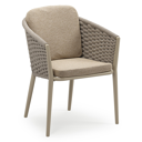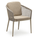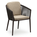 Orso stapelbare tuinstoel in donkerbruin aluminium en donkerbruin verticaal geweven ronde rope met stoelkussen in All Weather Cosytica Madagascar Oak | Exterioo tuinmeubelen