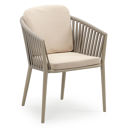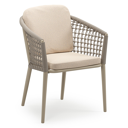 Orso stapelbare tuinstoel in donkerbruin aluminium en donkerbruin verticaal geweven ronde rope met stoelkussen in All Weather Sunbrella® Luxe Heritage Papyrus | Exterioo tuinmeubelen