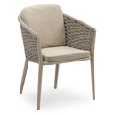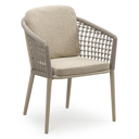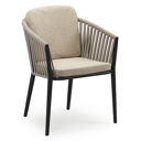 Orso stapelbare tuinstoel in zwart aluminium en beige verticaal geweven luxe vlakke brede rope met stoelkussen in All Weather Cosytica Bora Forest | Exterioo tuinmeubelen