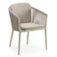 Orso stapelbare tuinstoel in beige aluminium en beige visnet geweven ronde rope met stoelkussen in All Weather Cosytica Catania Greige | Exterioo