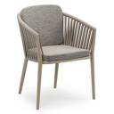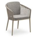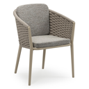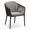Orso stapelbare tuinstoel in donkerbruin aluminium en donkerbruin verticaal geweven ronde rope met stoelkussen in All Weather Sunbrella® Luxe Tundra Pepper | Exterioo tuinmeubelen