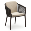 Orso stapelbare tuinstoel in donkerbruin aluminium en donkerbruin verticaal geweven ronde rope met stoelkussen in All Weather Cosytica Althea Chalk | Exterioo tuinmeubelen