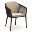 Orso stapelbare tuinstoel in donkerbruin aluminium en donkerbruin verticaal geweven ronde rope met stoelkussen in All Weather Cosytica Althea Camel | Exterioo tuinmeubelen