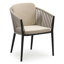 Orso stapelbare tuinstoel in zwart aluminium en beige verticaal geweven luxe vlakke brede rope met stoelkussen in All Weather Cosytica Althea Chalk | Exterioo
