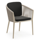 Orso stapelbare tuinstoel in beige aluminium en beige verticaal geweven luxe vlakke brede rope met stoelkussen in All Weather Sunbrella® Luxe Natte Sooty | Exterioo tuinmeubelen