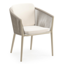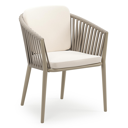 Orso stapelbare tuinstoel in beige aluminium en beige verticaal geweven luxe vlakke brede rope met stoelkussen in All Weather Sunbrella® Luxe Lopi Snow | Exterioo tuinmeubelen