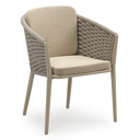 Orso tuinstoel in ruby aluminium en ruby verticaal geweven ronde rope met zitkussen in All Weather Cosytica Althea Camel | Exterioo tuinmeubelen