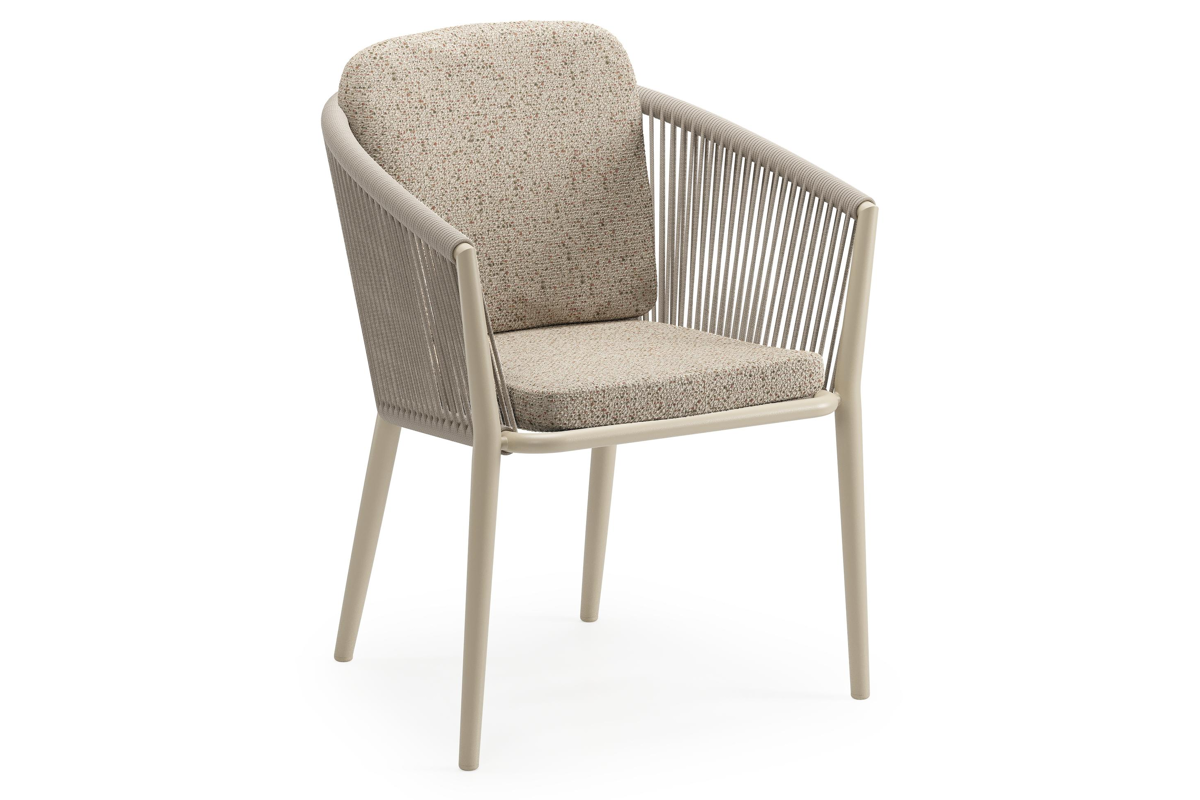 Orso tuinstoel in beige aluminium en beige verticaal geweven ronde rope met luxe zitkussen in All Weather Cosytica Bora Jungle | Exterioo