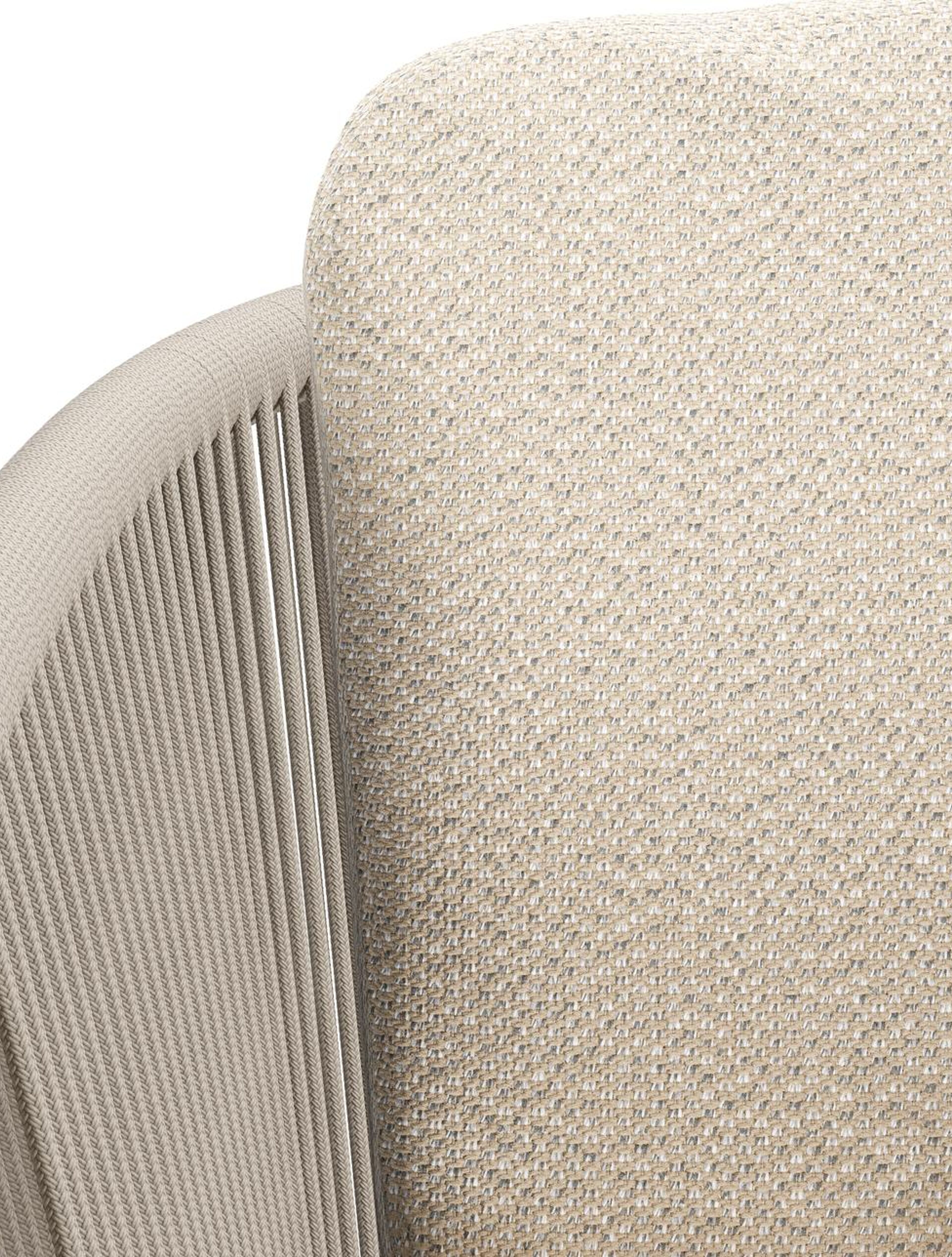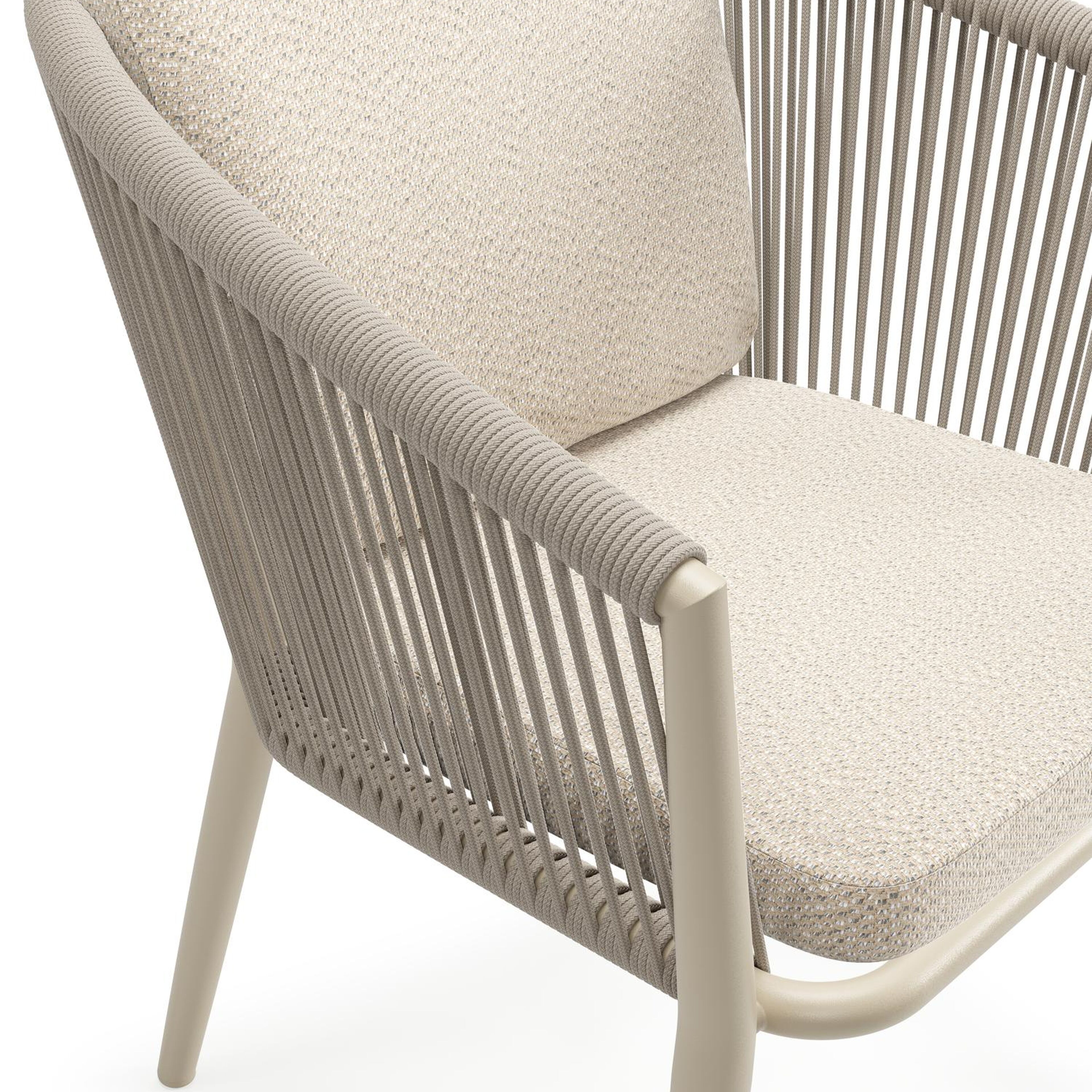 Orso tuinstoel in beige aluminium en beige verticaal geweven ronde rope met luxe zitkussen in All Weather Sunbrella® Luxe Lopi Sand | Exterioo tuinmeubelen