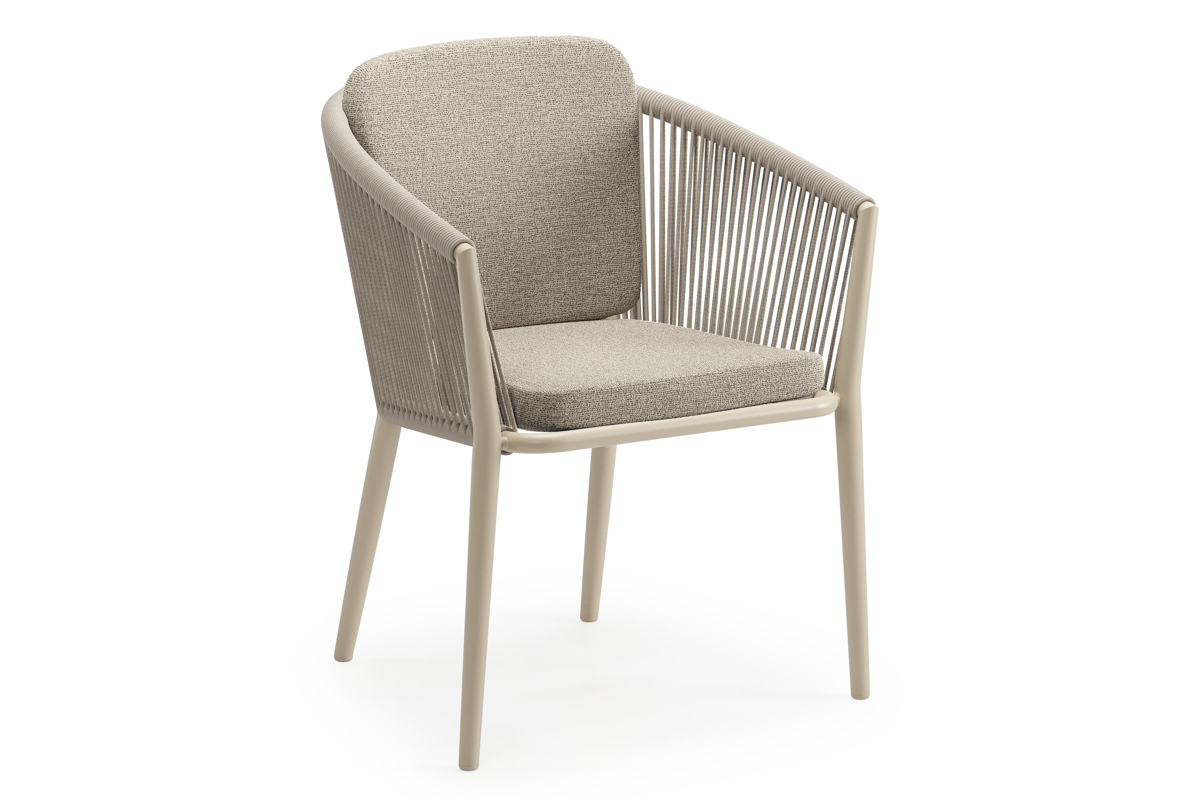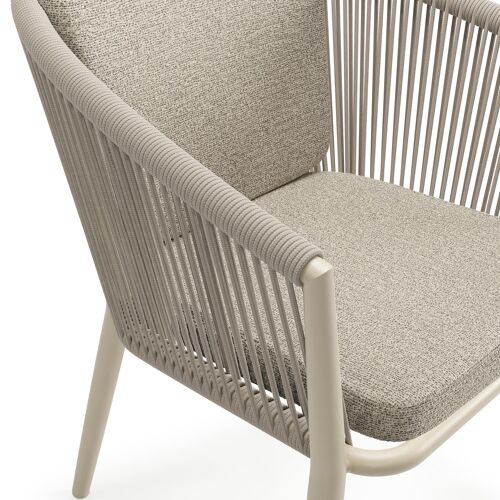 Orso tuinstoel in beige aluminium en beige verticaal geweven ronde rope met zitkussen in All Weather Cosytica Catania Beige | Exterioo