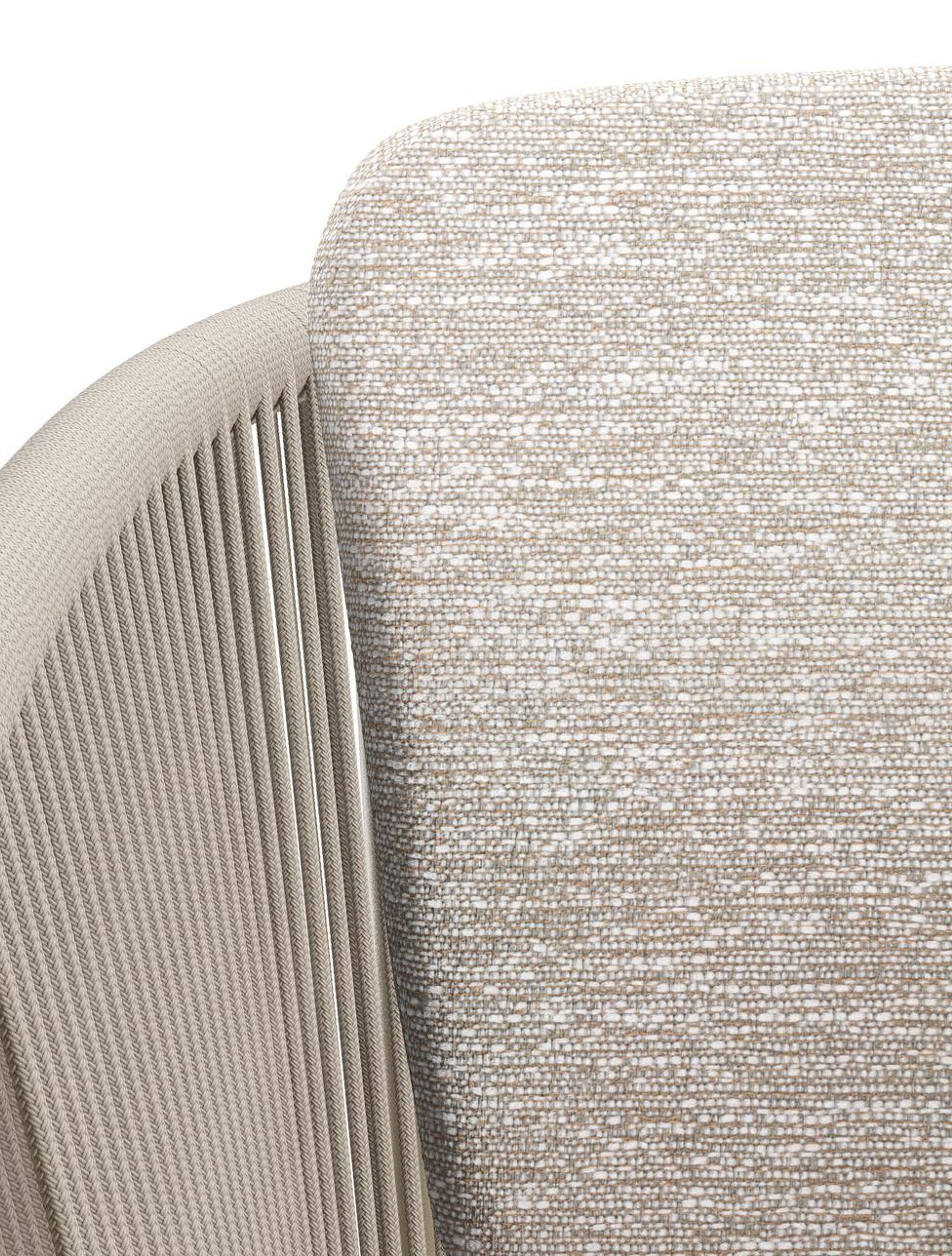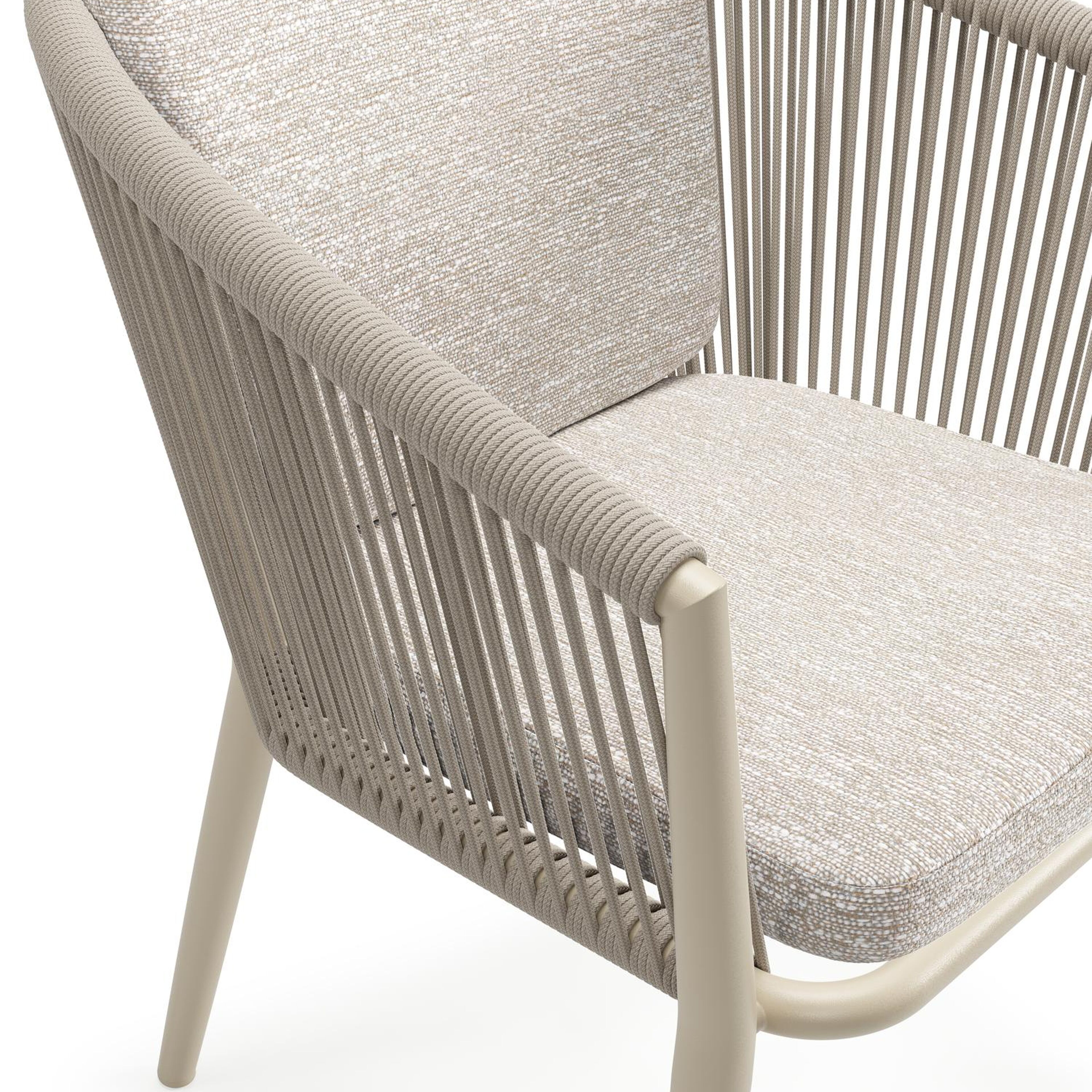 Orso tuinstoel in beige aluminium en beige verticaal geweven ronde rope met zitkussen in All Weather Sunbrella® Luxe Tundra Sand | Exterioo tuinmeubelen