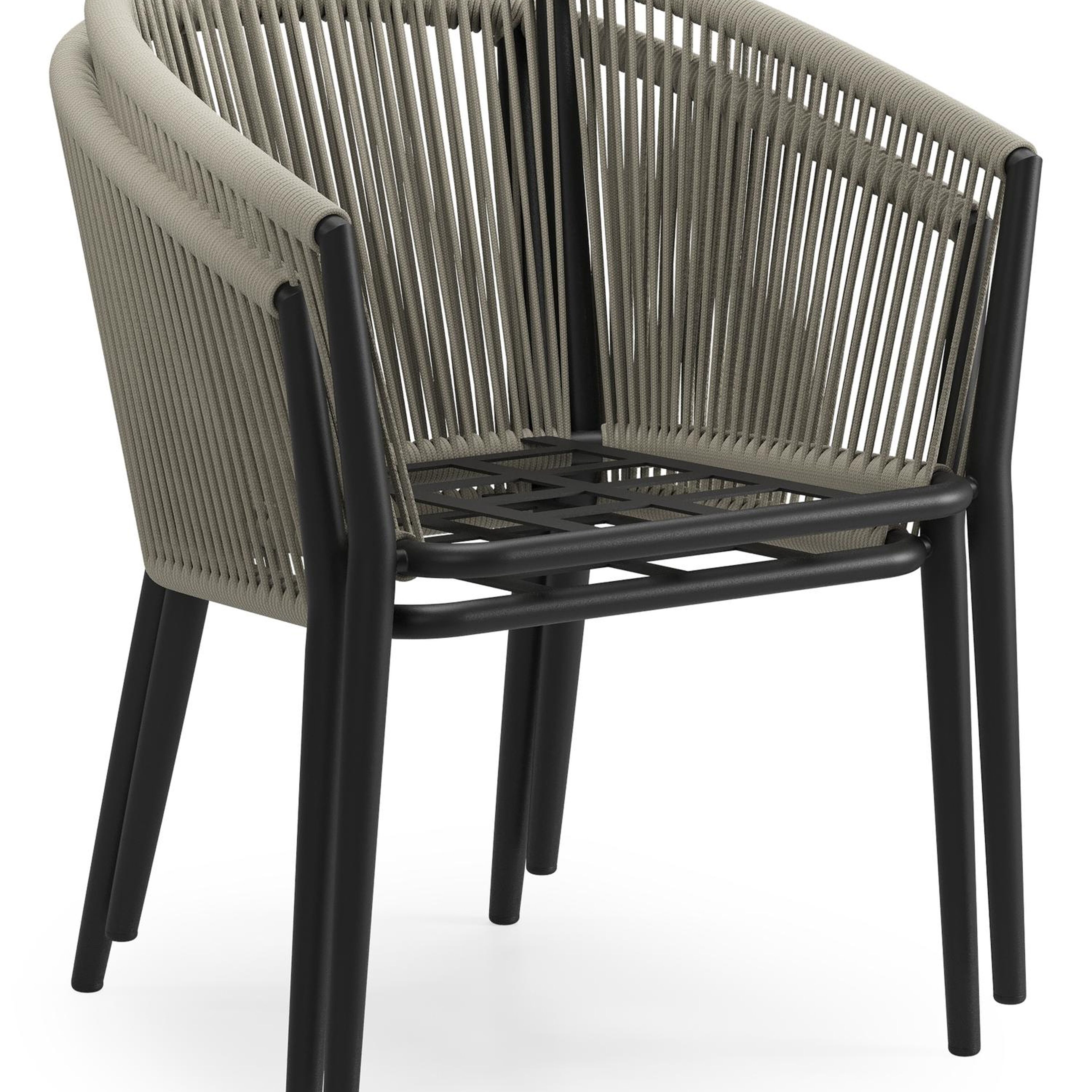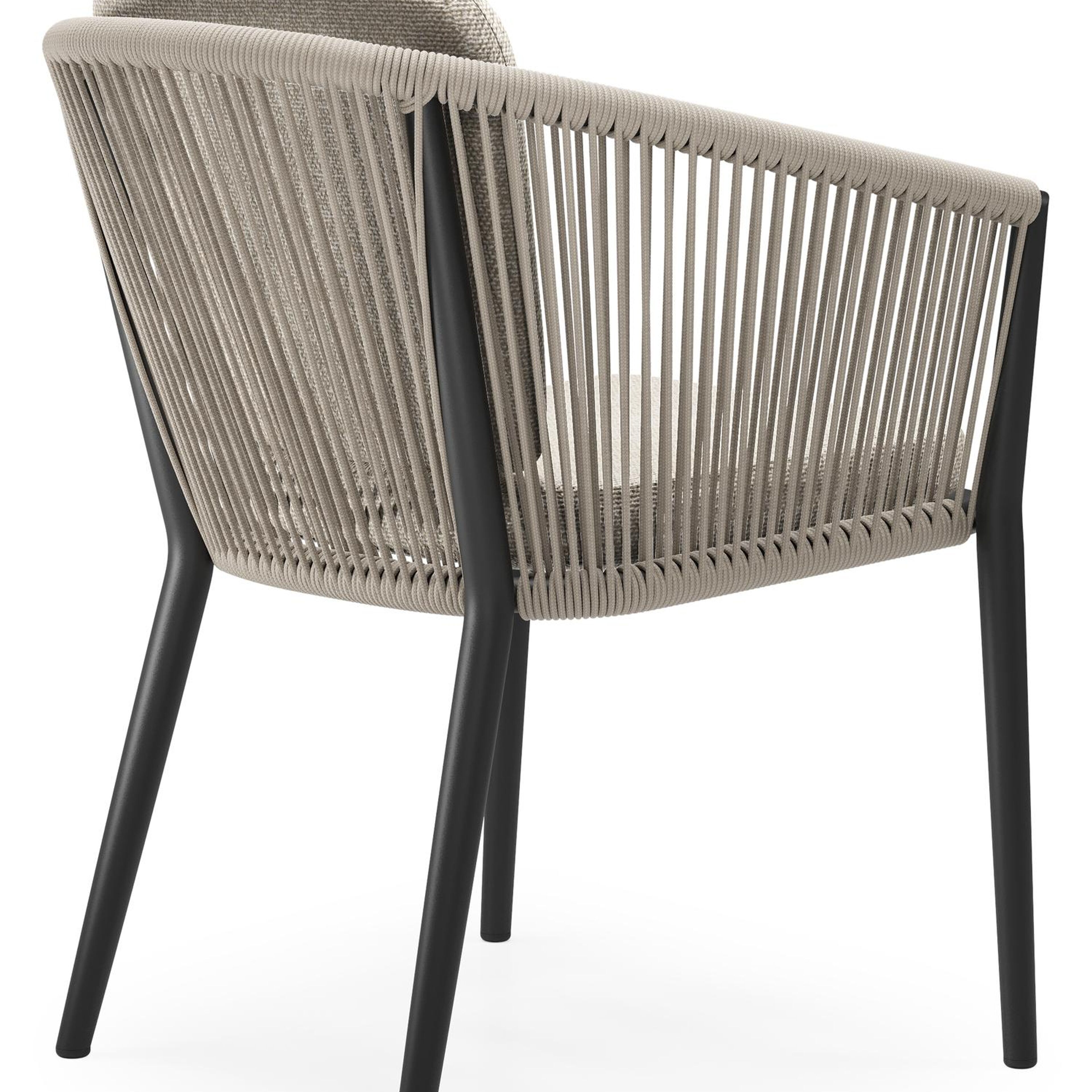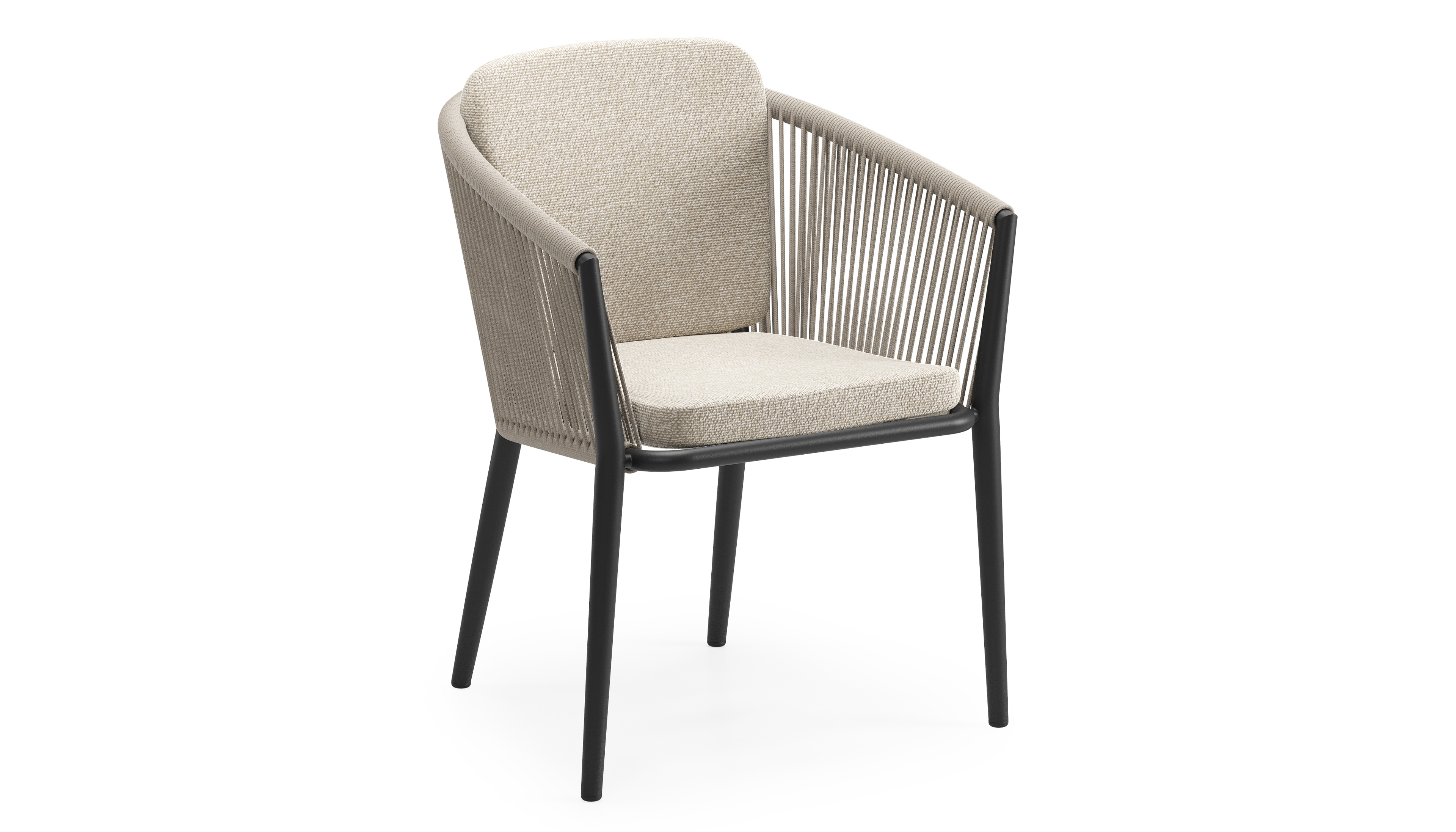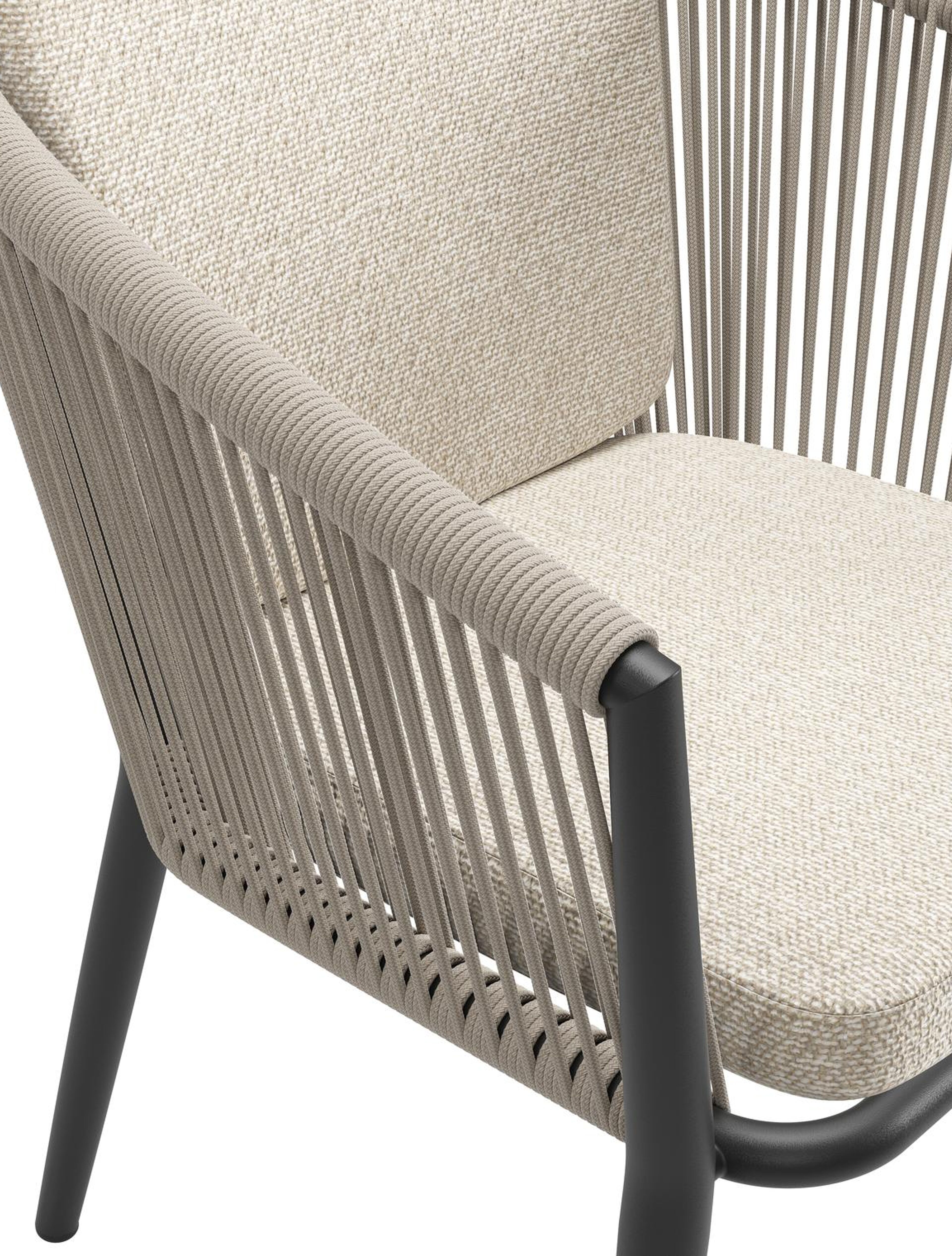 Orso tuinstoel in zwart aluminium en beige verticaal geweven ronde rope met zitkussen in All Weather Cosytica Marbella Ecru | Exterioo tuinmeubelen