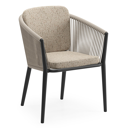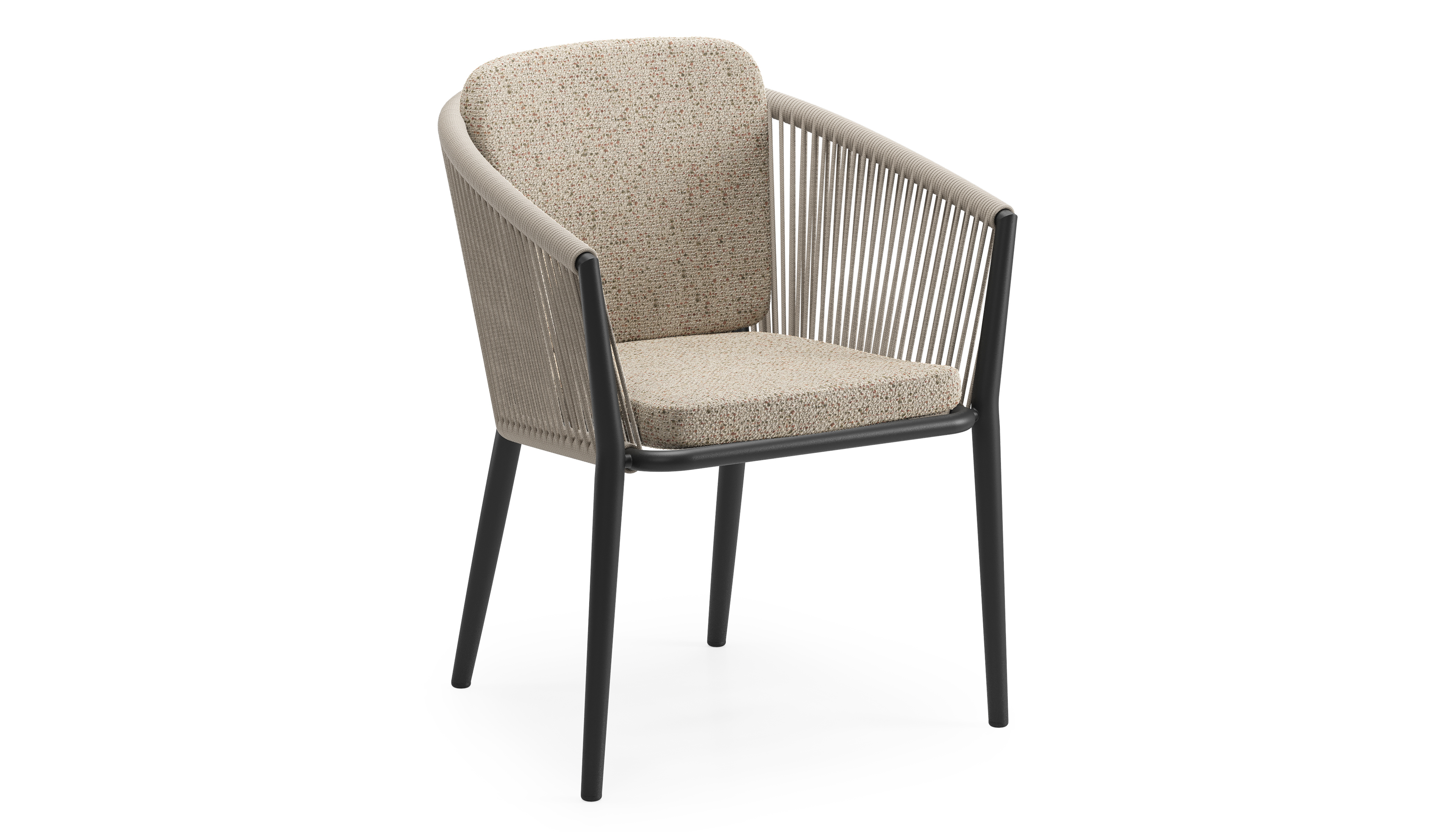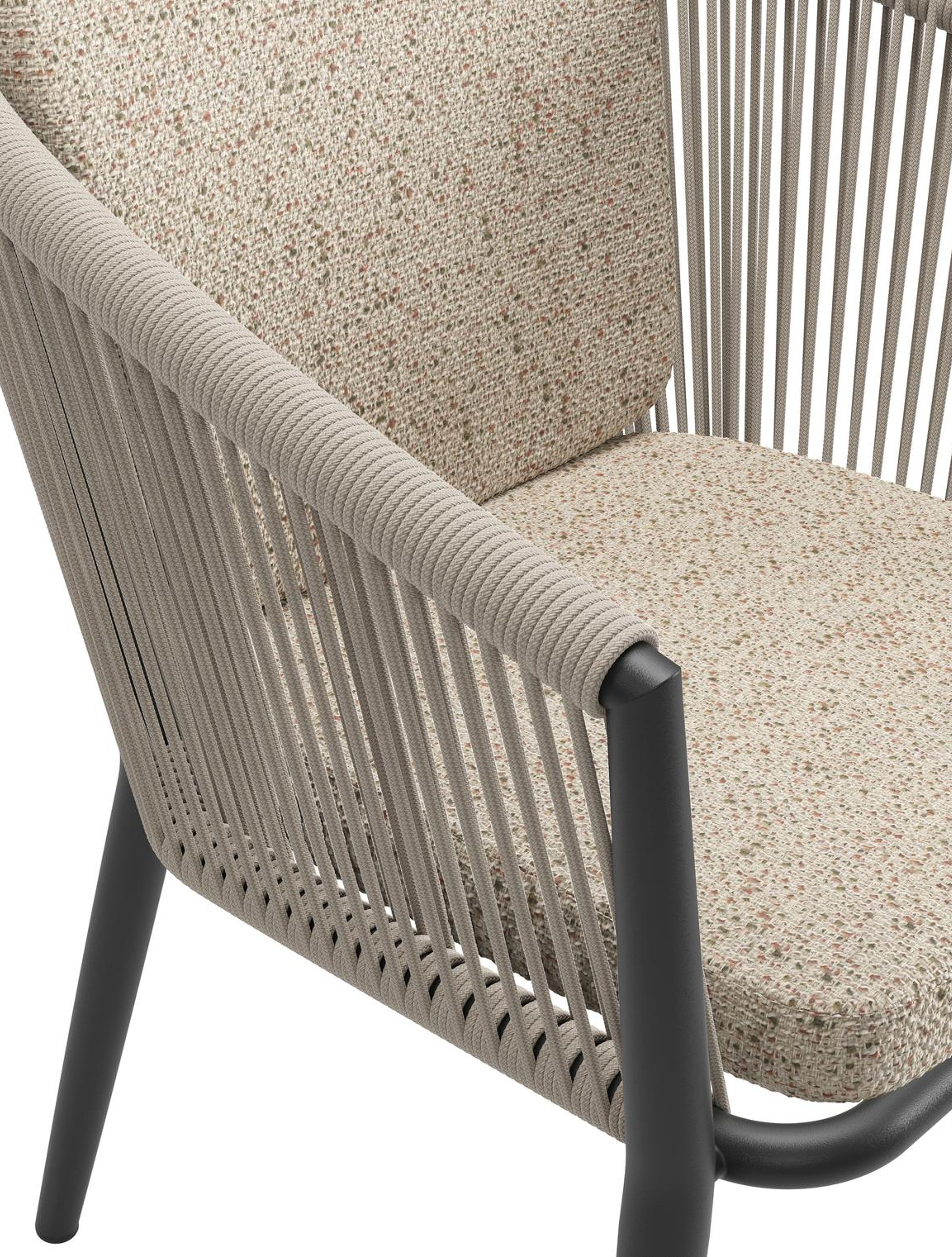 Orso tuinstoel in zwart aluminium en beige verticaal geweven ronde rope met zitkussen in All Weather Cosytica Bora Jungle | Exterioo tuinmeubelen