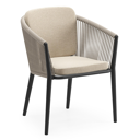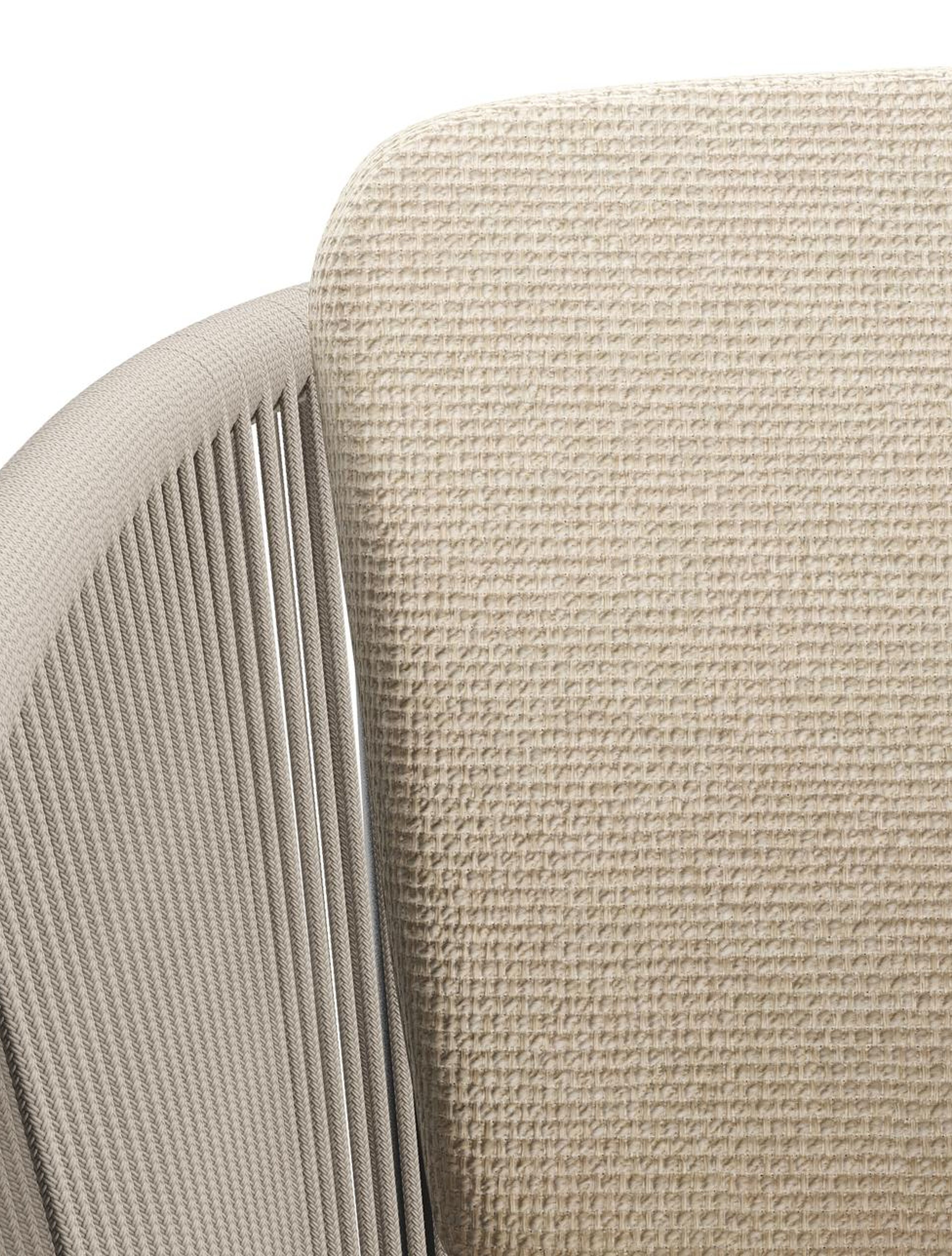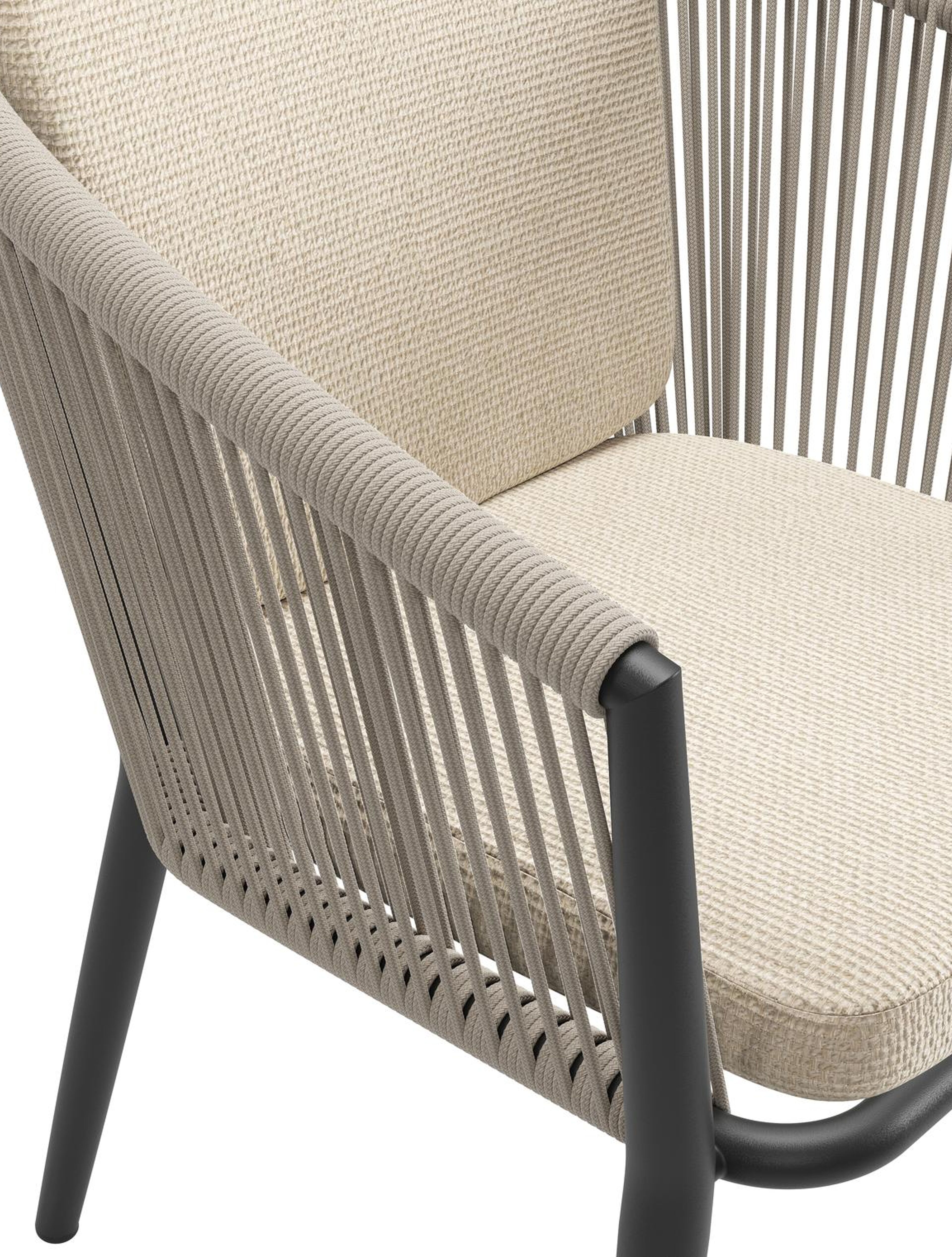 Orso tuinstoel in zwart aluminium en beige verticaal geweven ronde rope met zitkussen in All Weather Cosytica Althea Chalk | Exterioo tuinmeubelen