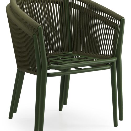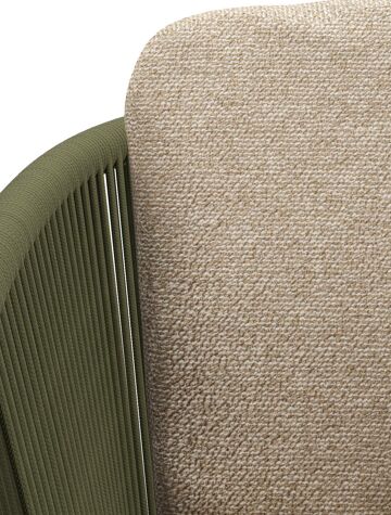 Orso tuinstoel in groen aluminium en groen verticaal geweven ronde rope met luxe zitkussen in All Weather Cosytica Madagascar Oak | Exterioo