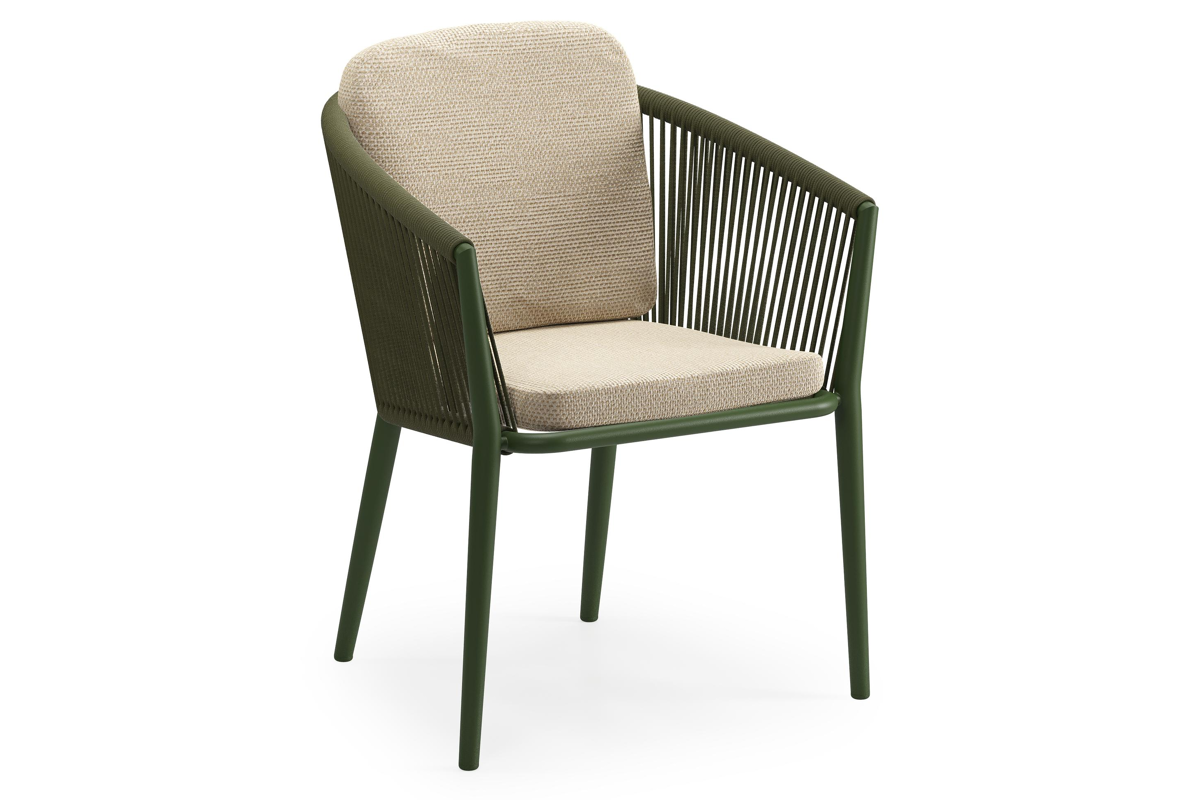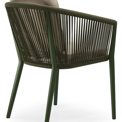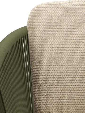 Orso tuinstoel in groen aluminium en groen verticaal geweven ronde rope met luxe zitkussen in All Weather Cosytica Althea Camel | Exterioo