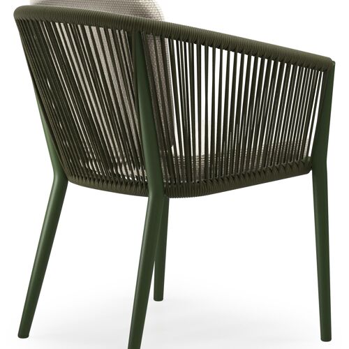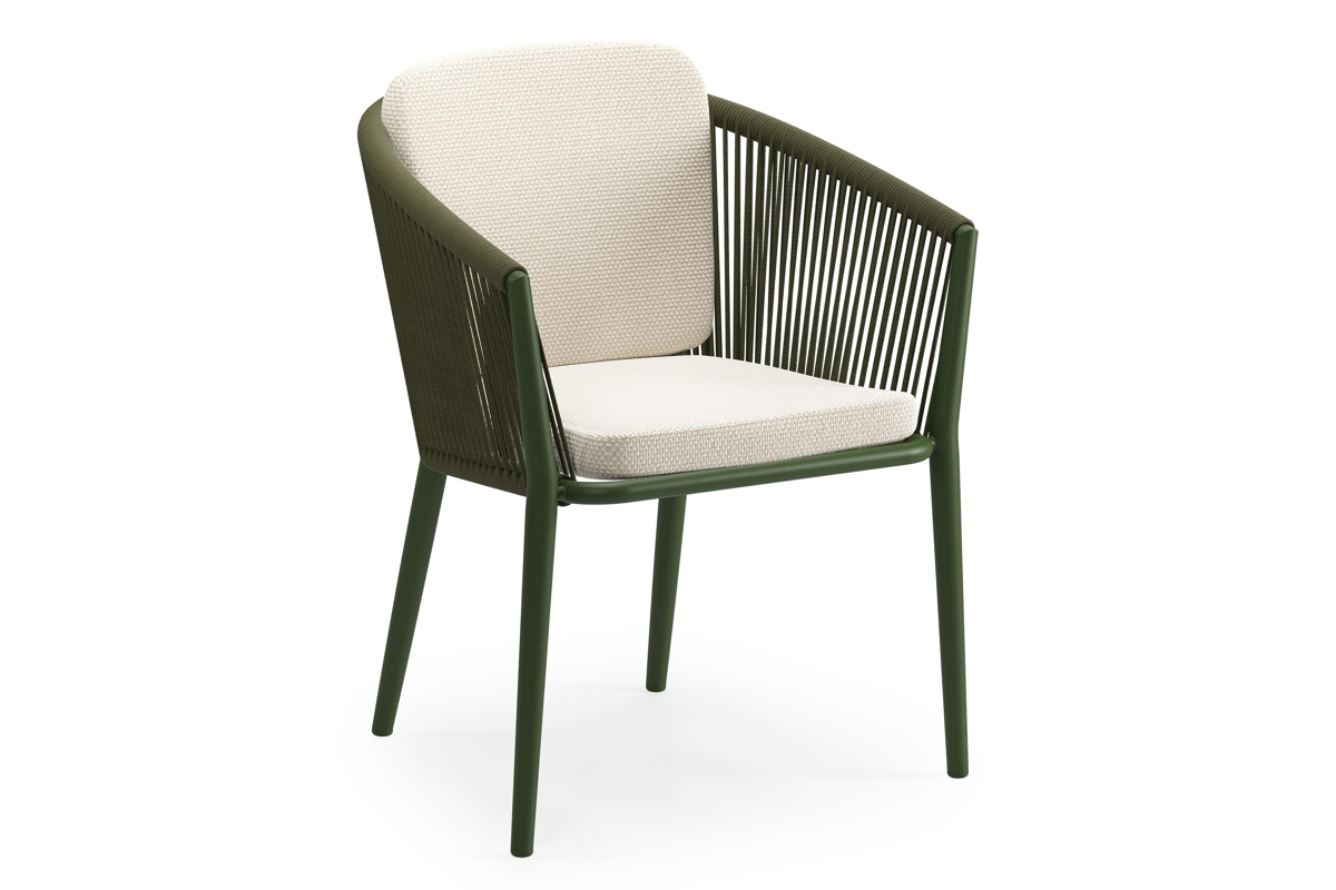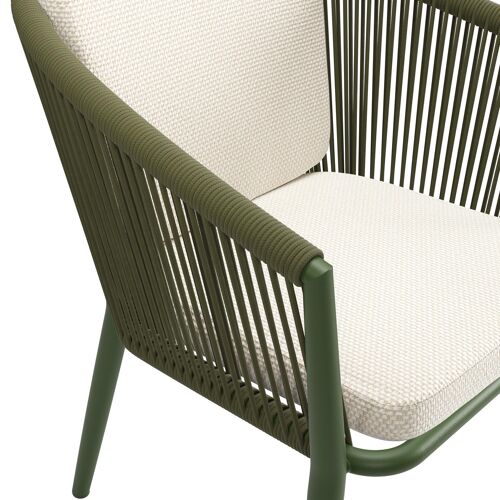 Orso tuinstoel in groen aluminium en groen verticaal geweven ronde rope met zitkussen in All Weather Cosytica Althea Off White | Exterioo