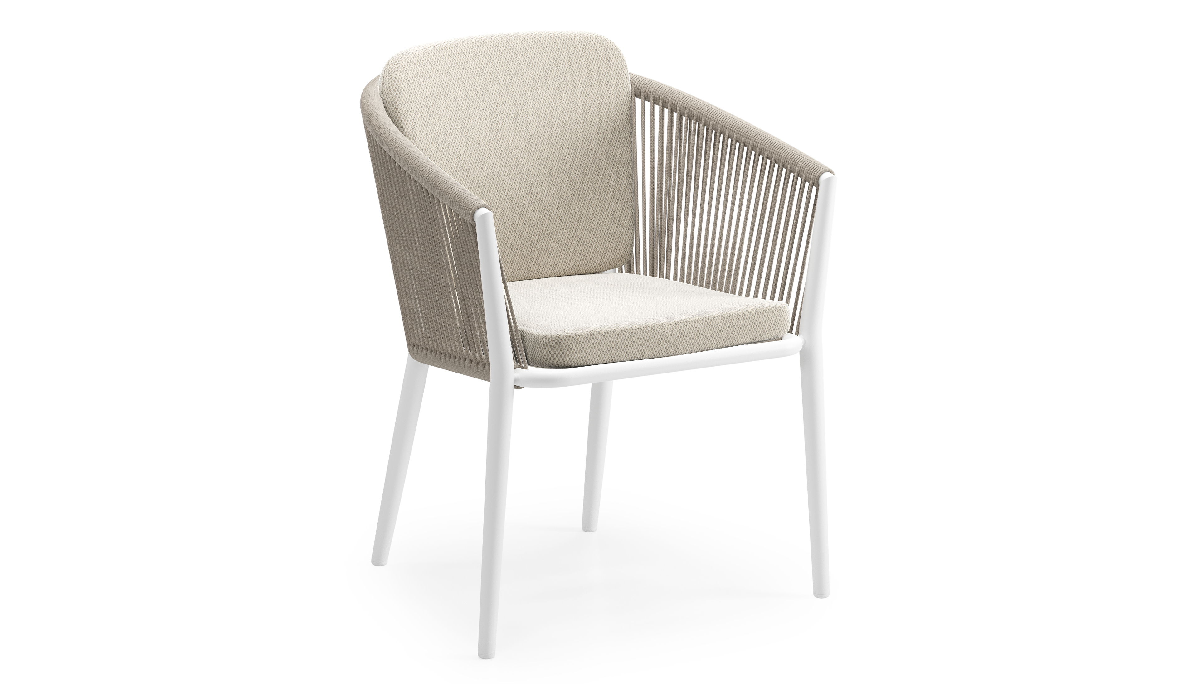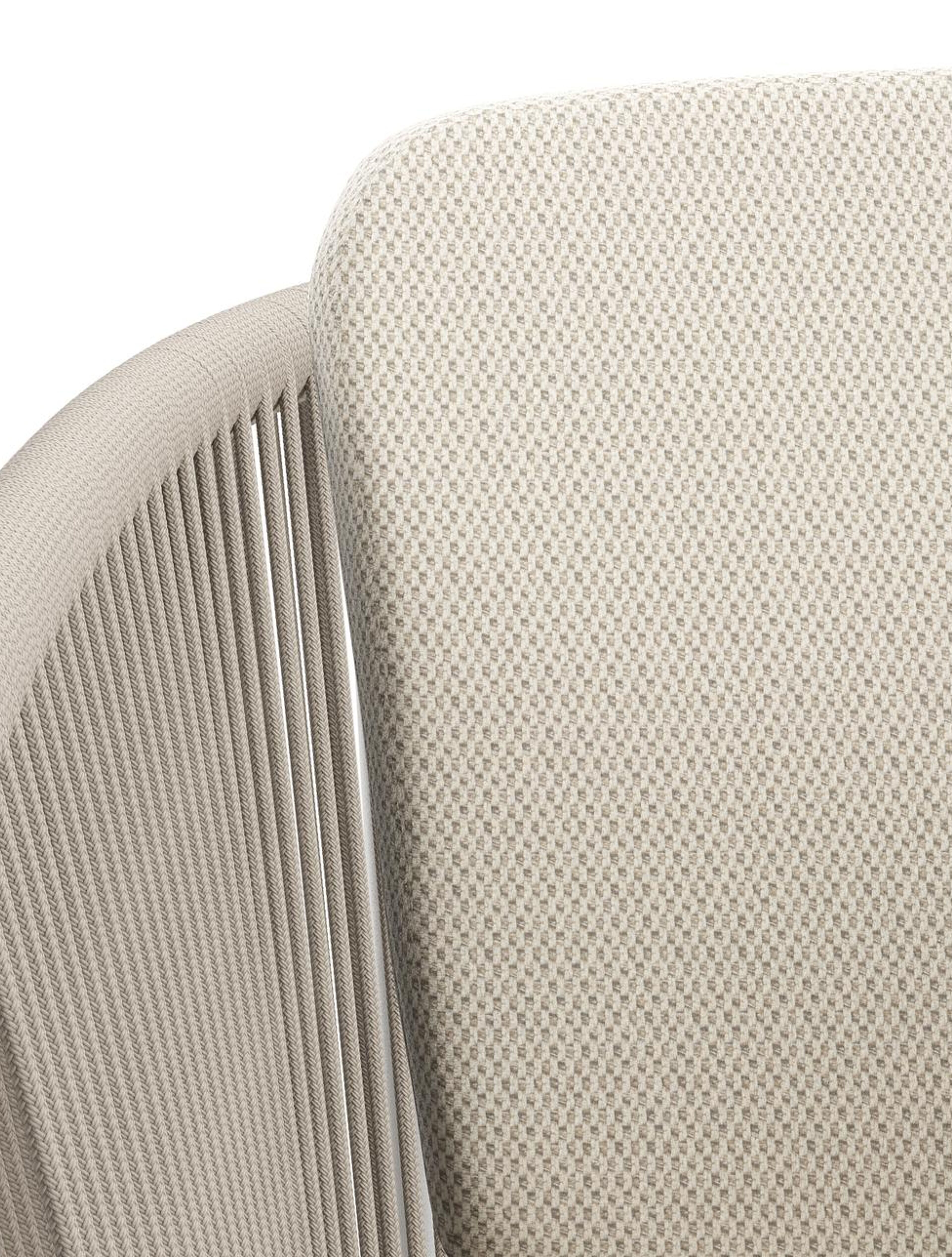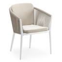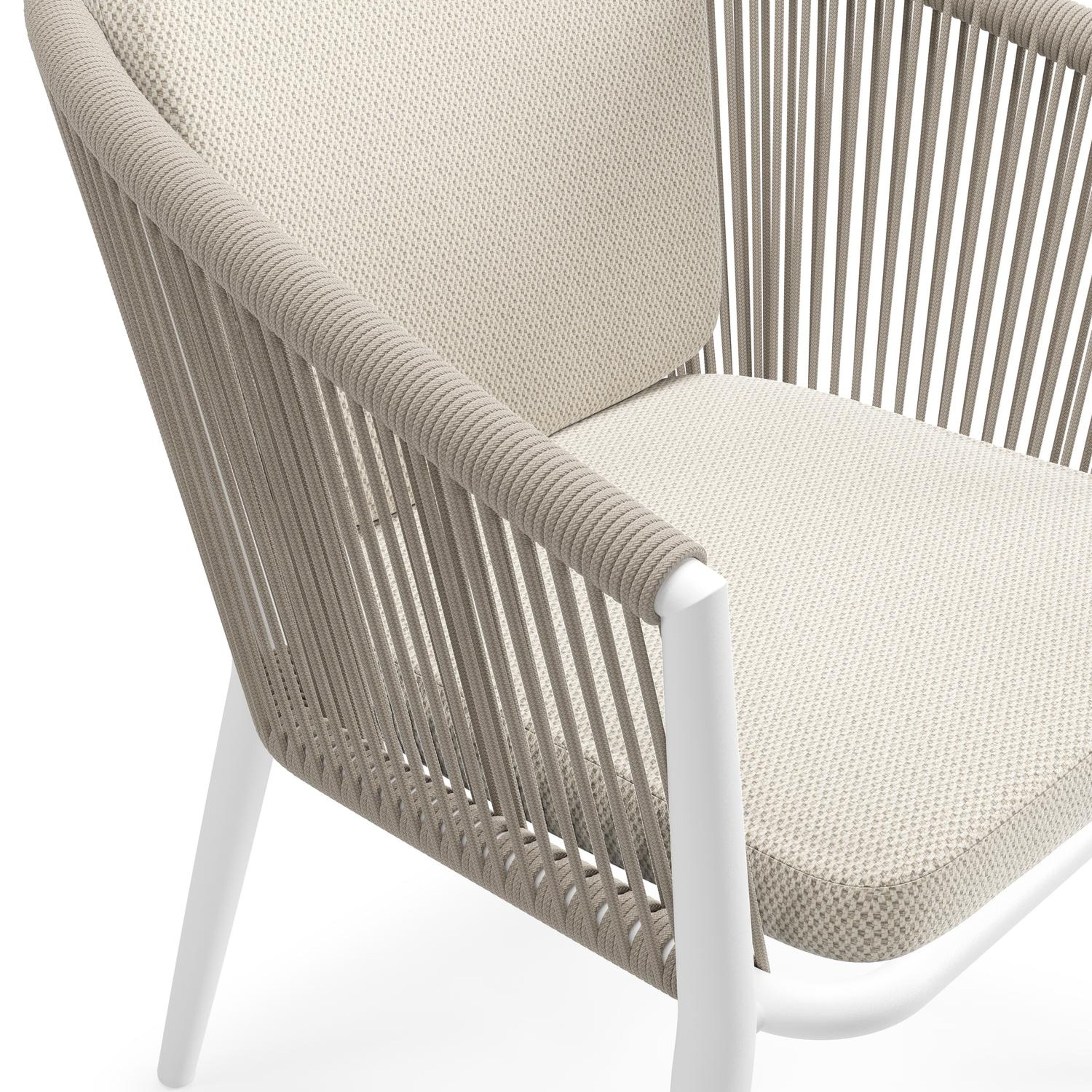 Orso tuinstoel in wit aluminium en beige verticaal geweven ronde rope met kussen in lopi marble all weather sunbrella® luxe | Exterioo tuinmeubelen
