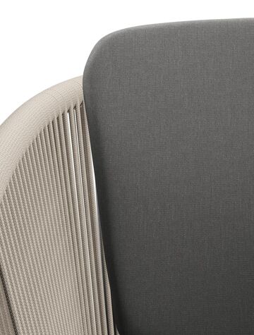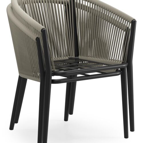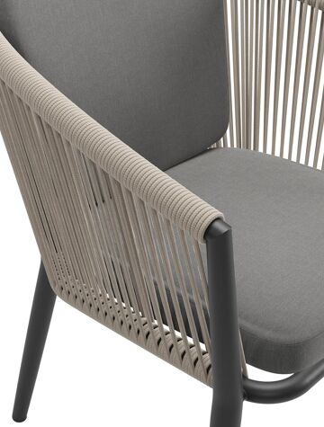 Orso tuinstoel in zwart aluminium en beige verticaal geweven ronde rope met kussen in natte charcoal chine all weather sunbrella® luxe | Exterioo