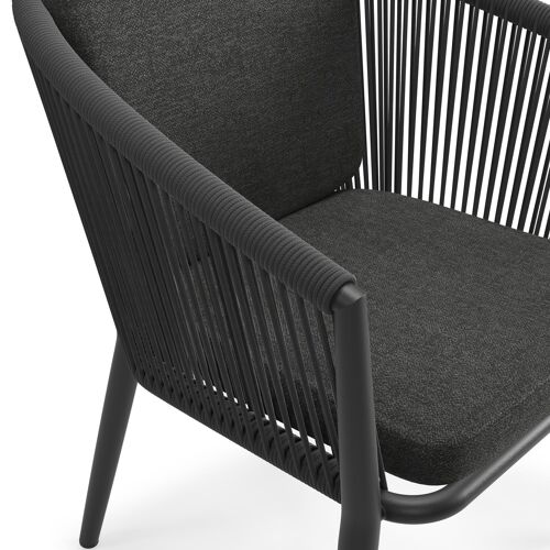 De Orso stoel is een trendy rope tuinstoel die jouw tuin compleet maakt. Het frame is gemaakt uit aluminium en daardoor roestvrij en stevig. De rugleuning en armleuning zijn afgewerkt met verticale rope. Dit geeft de stoel een speelse touch. Inclusief is het kussen in Sunbrella Luxe uitvoering. Dit kussen kan je buiten laten liggen in verschillende weersomstandigheden. Geniet van je buitenmoment en relax in de Orso tuinstoel.