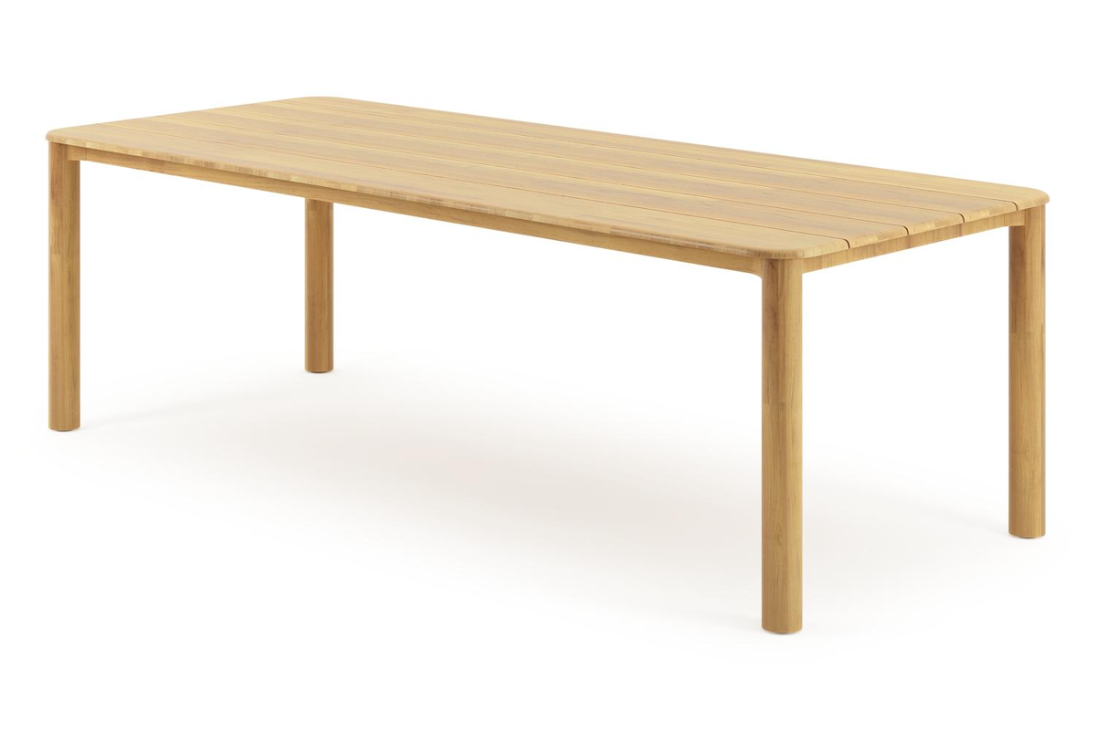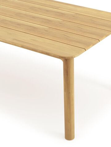 De Orso tuintafel, gemaakt uit prachtig teakhout, is een ware blikvanger voor je buitenruimte. De ronde poten en het afgerond rechthoekig tafelblad, waarbij de zijden subtiel over de poten zweeft, geeft de tafel een hedendaags natuurlijk design.