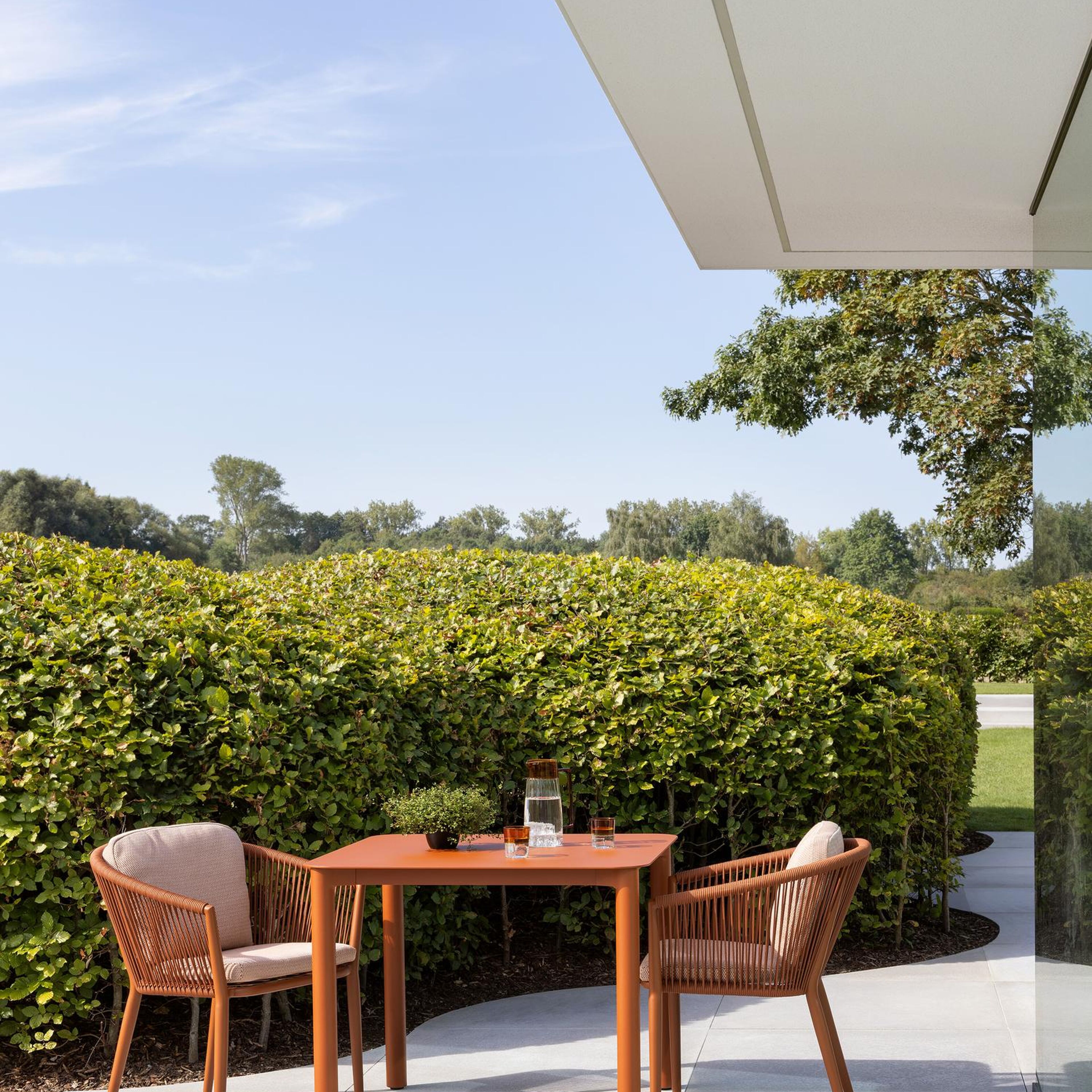De Orso tuintafel, is een ware blikvanger voor je buitenruimte. De ronde poten en het afgerond vierkant tafelblad, waarbij de zijden subtiel over de poten zweeft, geeft de tafel een hedendaags natuurlijk design.