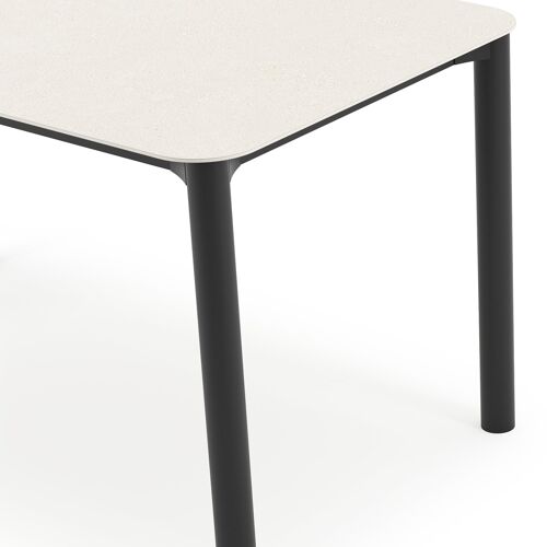 Orso tuintafel rechthoekig afgerond in zwart aluminium en volkeramiek beige - L 140 x B 80 x H 75 cm | Exterioo