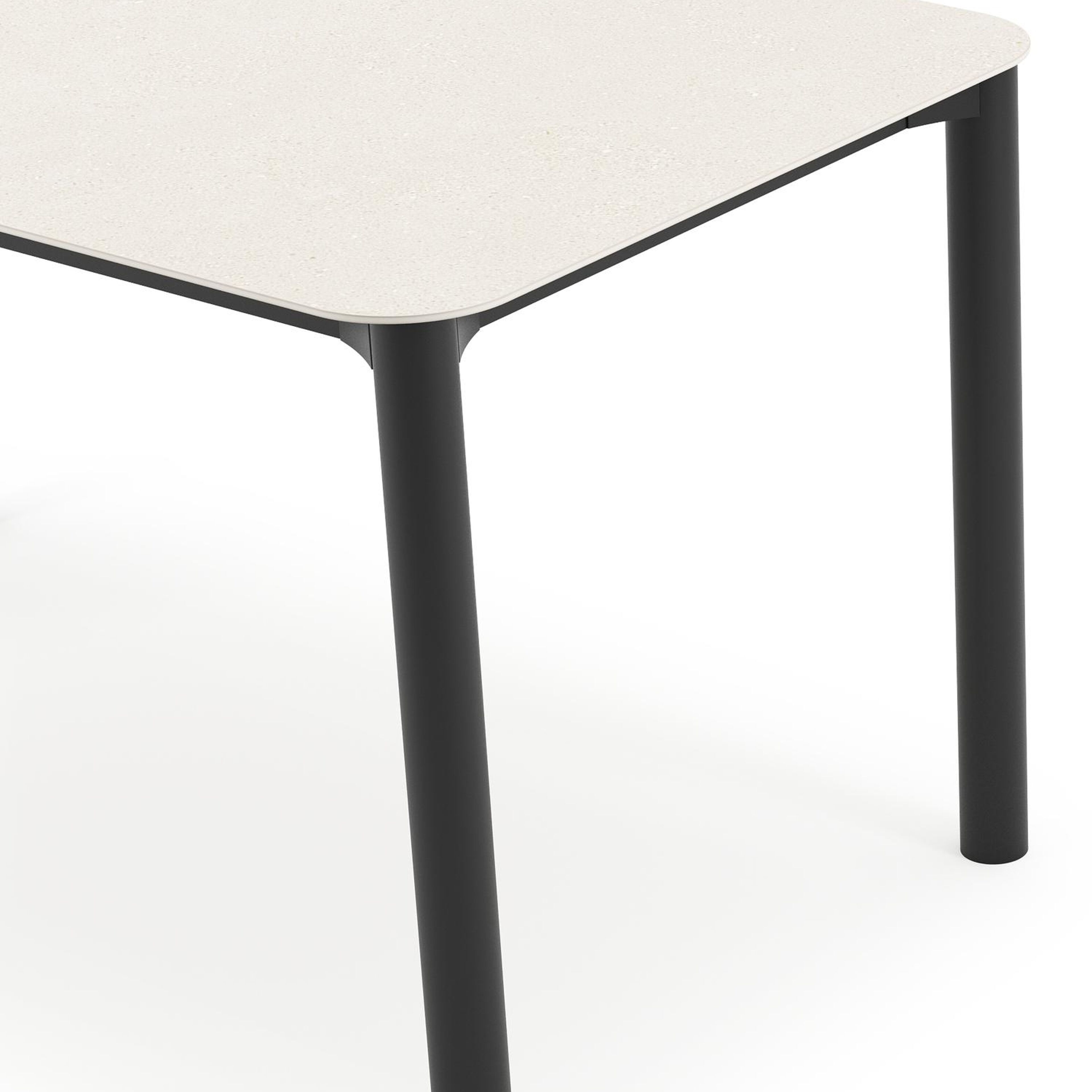 Het frame van de tafel is gemaakt uit roestvrij aluminium, een sterk, maar toch licht materiaal dat makkelijk verplaatsbaar is. Het oppervlak is glad afgewerkt waardoor het geen vuil aantrekt en onderhoudsvriendelijk is. De poedercoating zorgt voor de UV- en weerbestendigheid van je meubel.