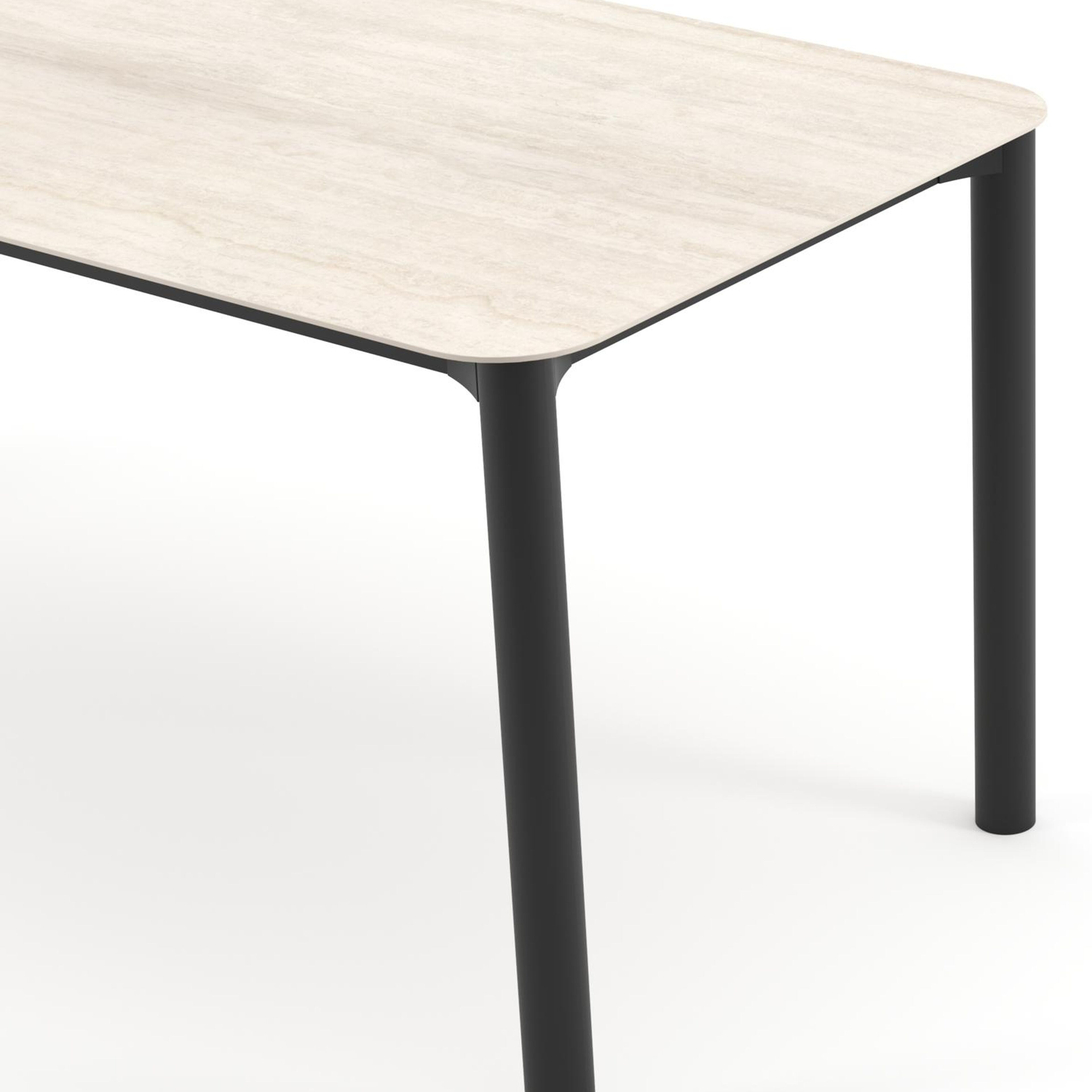 Orso tuintafel rechthoekig afgerond in zwart aluminium en volkeramiek Travertino Bianco - L 200 x B 80 x H 74.5 cm | Exterioo tuinmeubelen