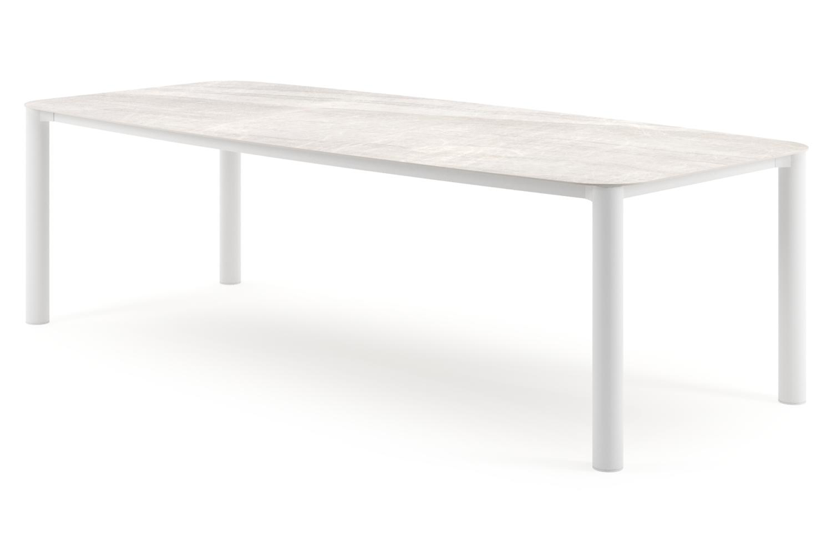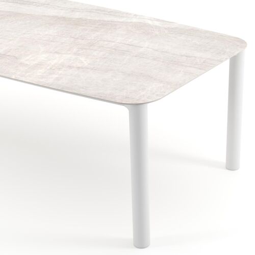 Orso tuintafel bootvorm in wit aluminium en volkeramiek Taj Mahal - L 255 x B 115 x H 74.5 cm | Exterioo