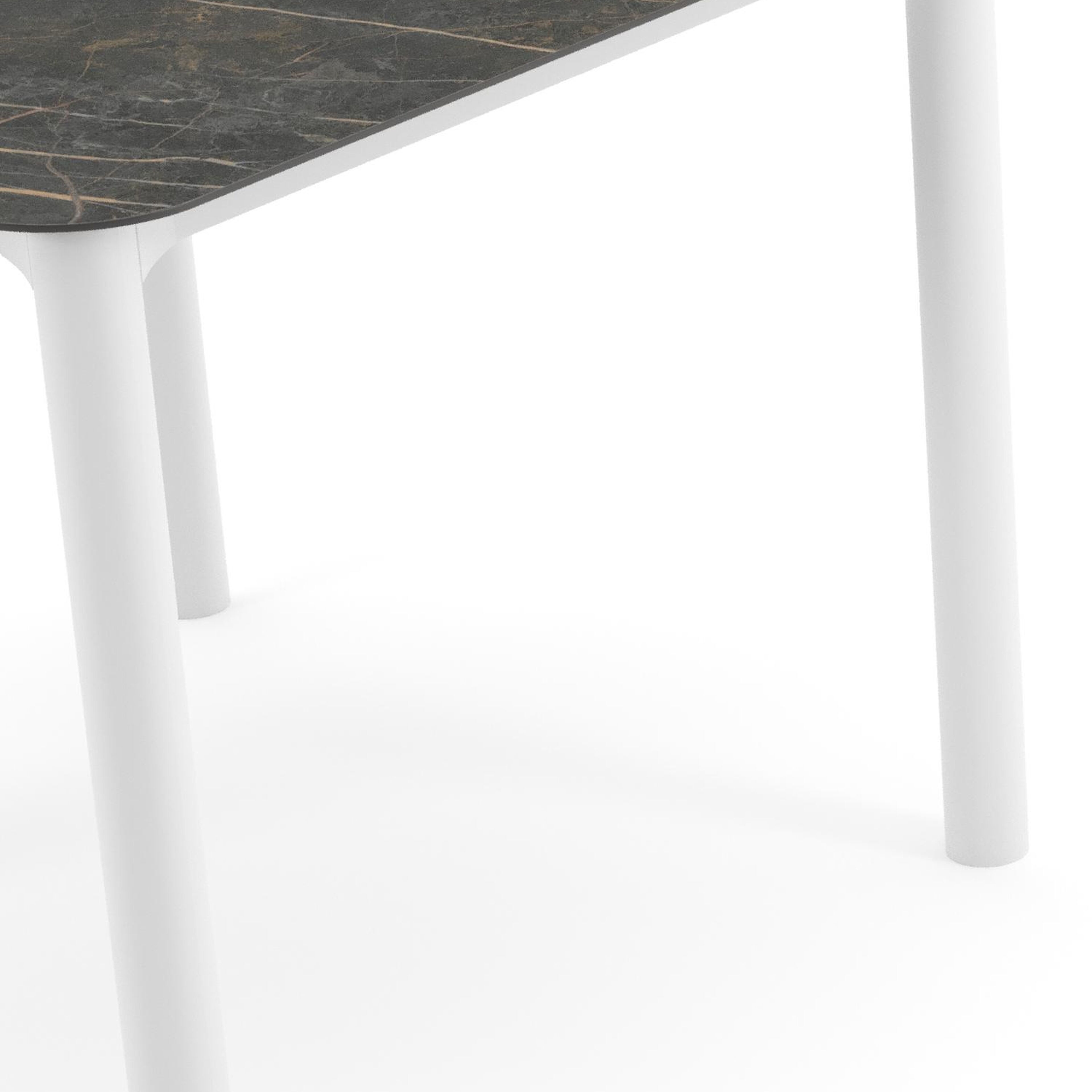 Het frame van de tafel is gemaakt uit roestvrij aluminium, een sterk, maar toch licht materiaal dat makkelijk verplaatsbaar is. Het oppervlak is glad afgewerkt waardoor het geen vuil aantrekt en onderhoudsvriendelijk is. De poedercoating zorgt voor de UV- en weerbestendigheid van je meubel.
