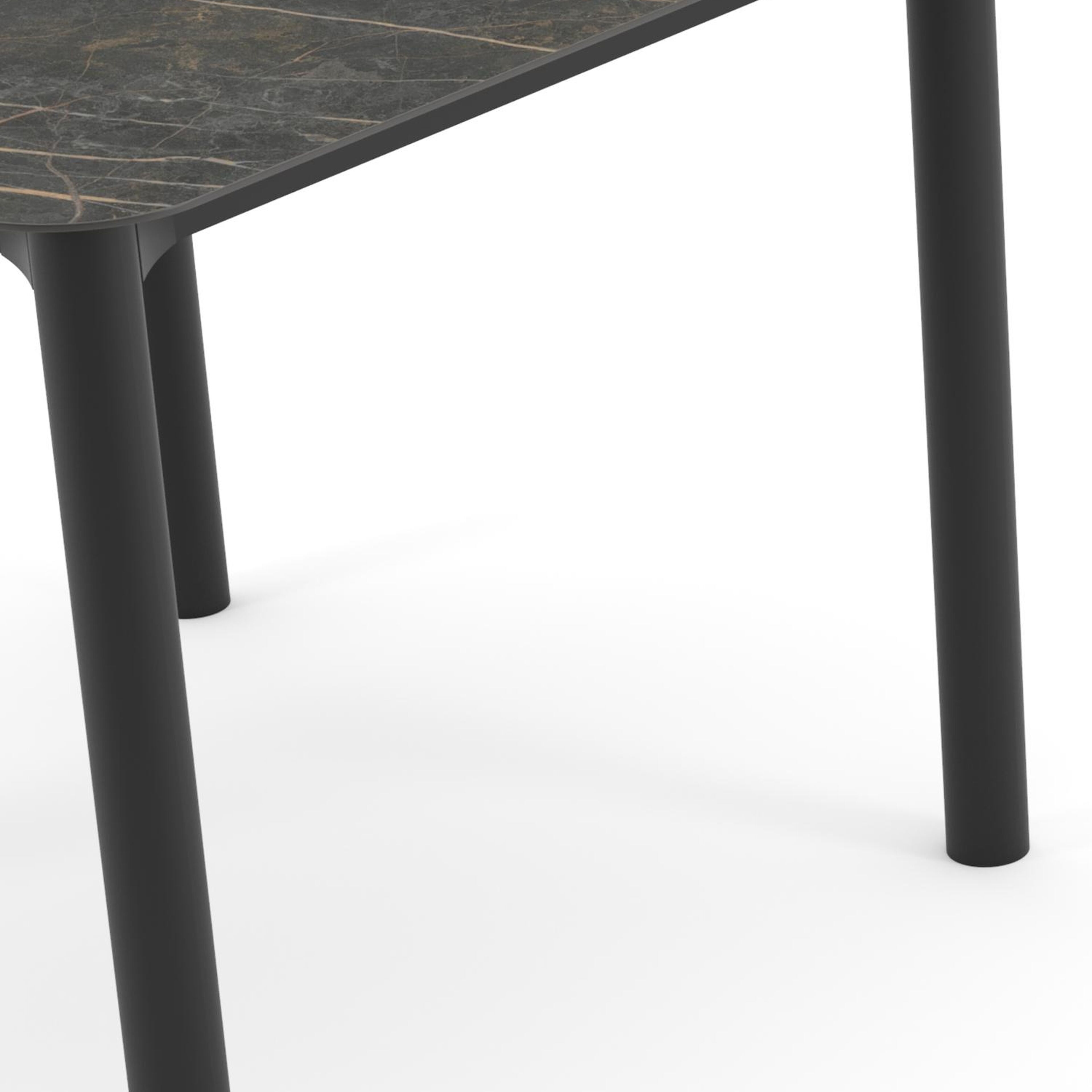 Het frame van de tafel is gemaakt uit roestvrij aluminium, een sterk, maar toch licht materiaal dat makkelijk verplaatsbaar is. Het oppervlak is glad afgewerkt waardoor het geen vuil aantrekt en onderhoudsvriendelijk is. De poedercoating zorgt voor de UV- en weerbestendigheid van je meubel.